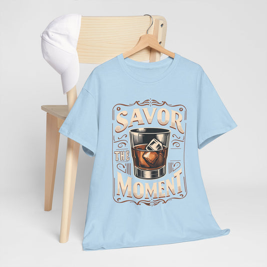 Savor the Moment Heavy Cotton Tee for Men - Perfect Gift for Whiskey Lovers