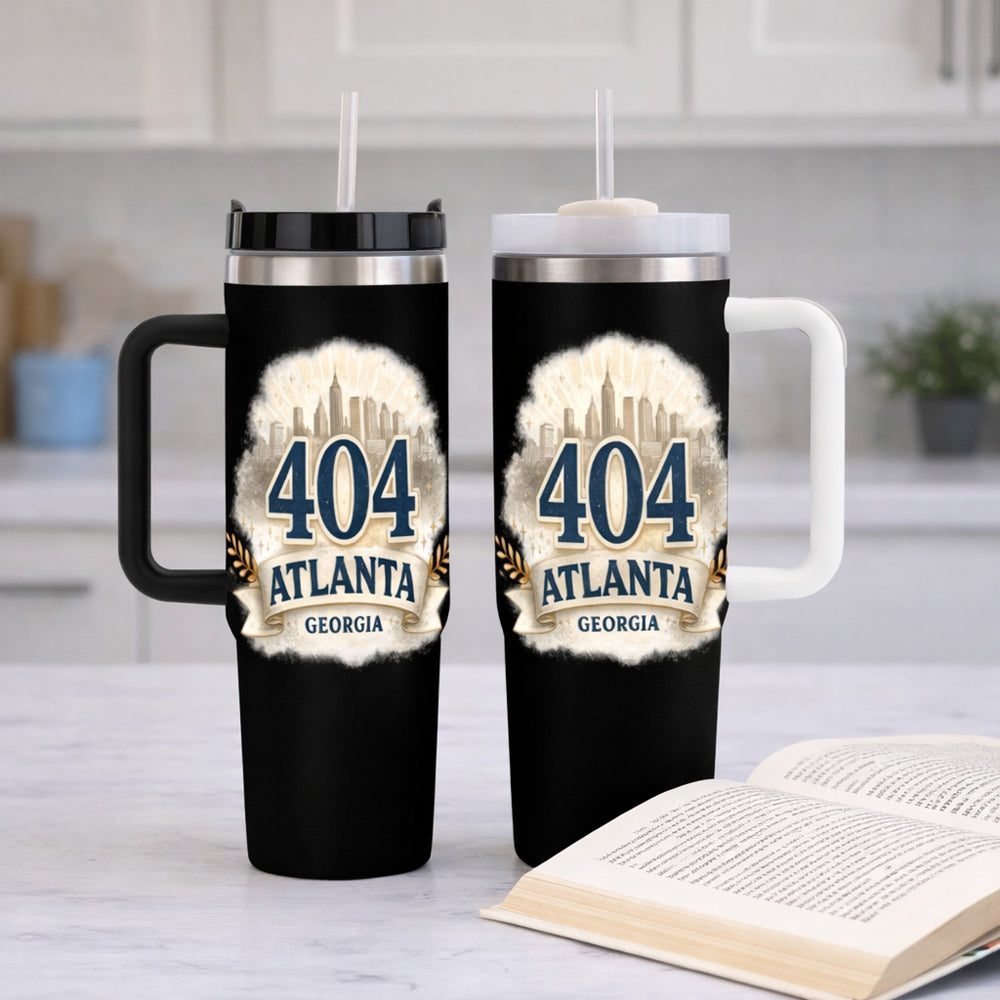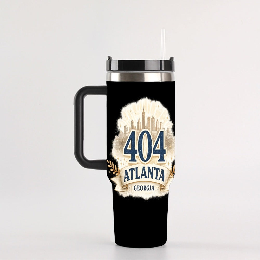 Show off your 404 Atlanta Georgia pride with this bold 40oz insulated tumbler designed for everyday use. Whether you’re on the go, at work, or in the car, this tumbler keeps your drinks hot or cold for hours while making a statement.