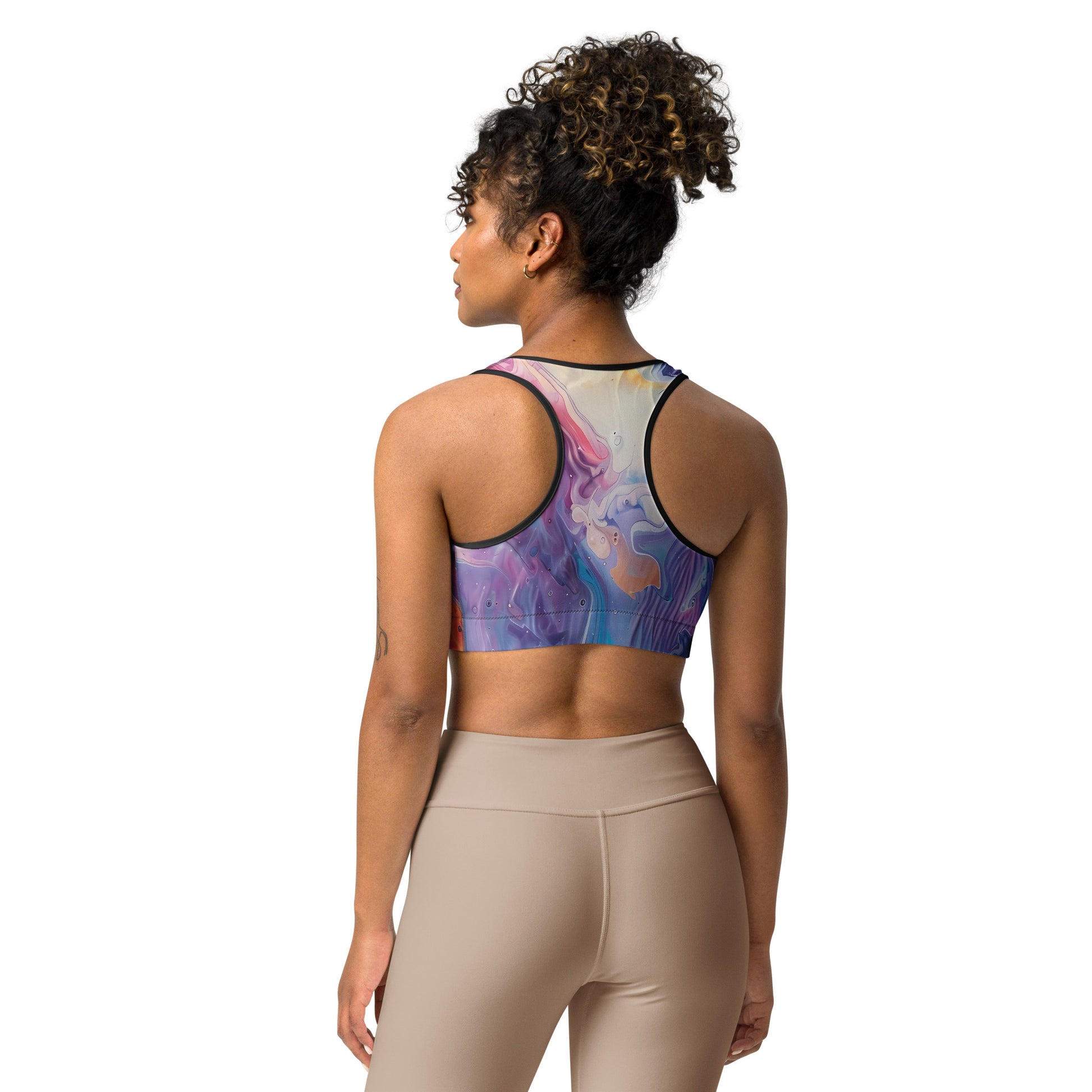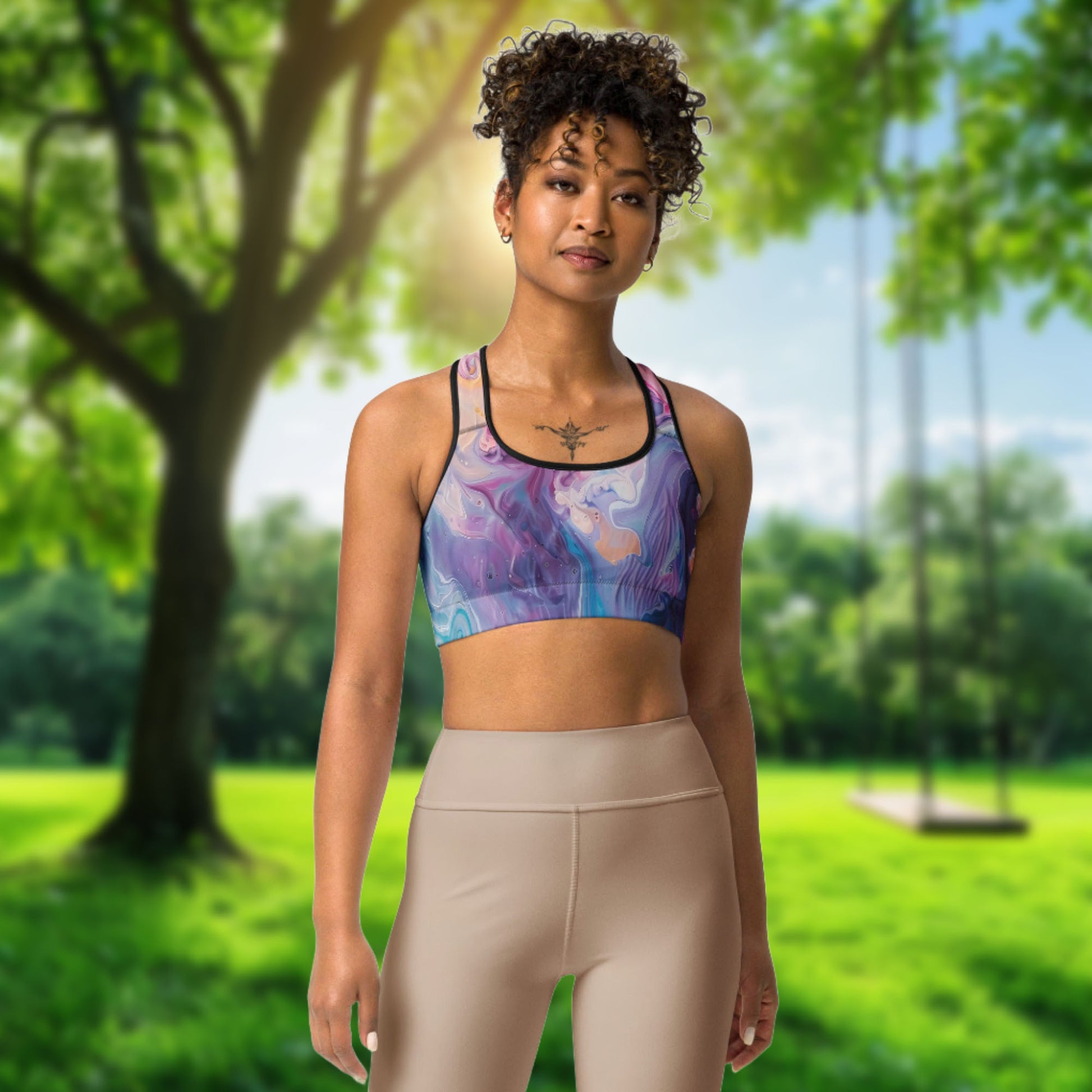 Crafted from moisture-wicking fabric, this stunning sports bra keeps you dry and comfortable through every low and medium-intensity workout. Featuring supportive shoulder straps, a double-layered front, and a wide elastic band, it guarantees consistent support for your active lifestyle.
