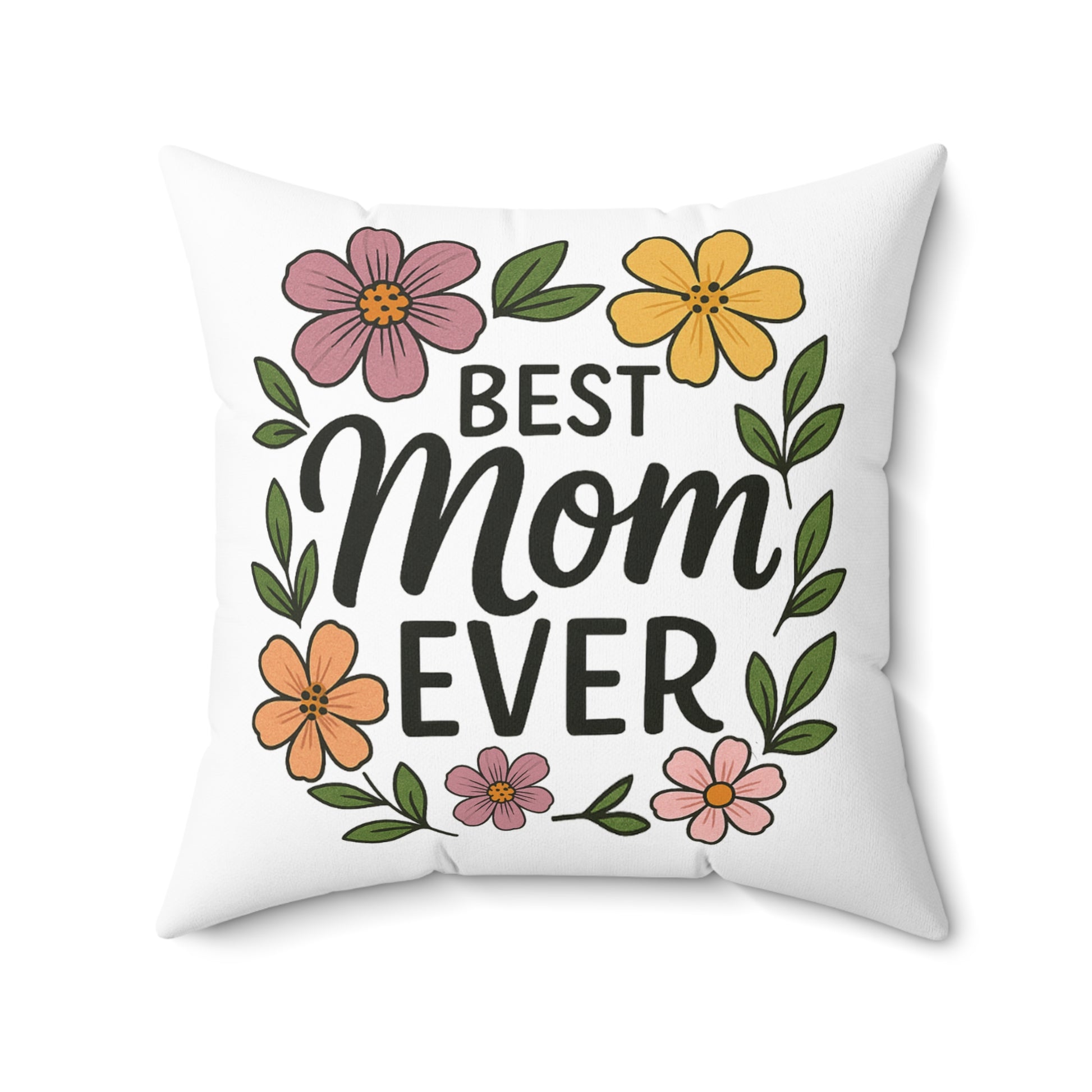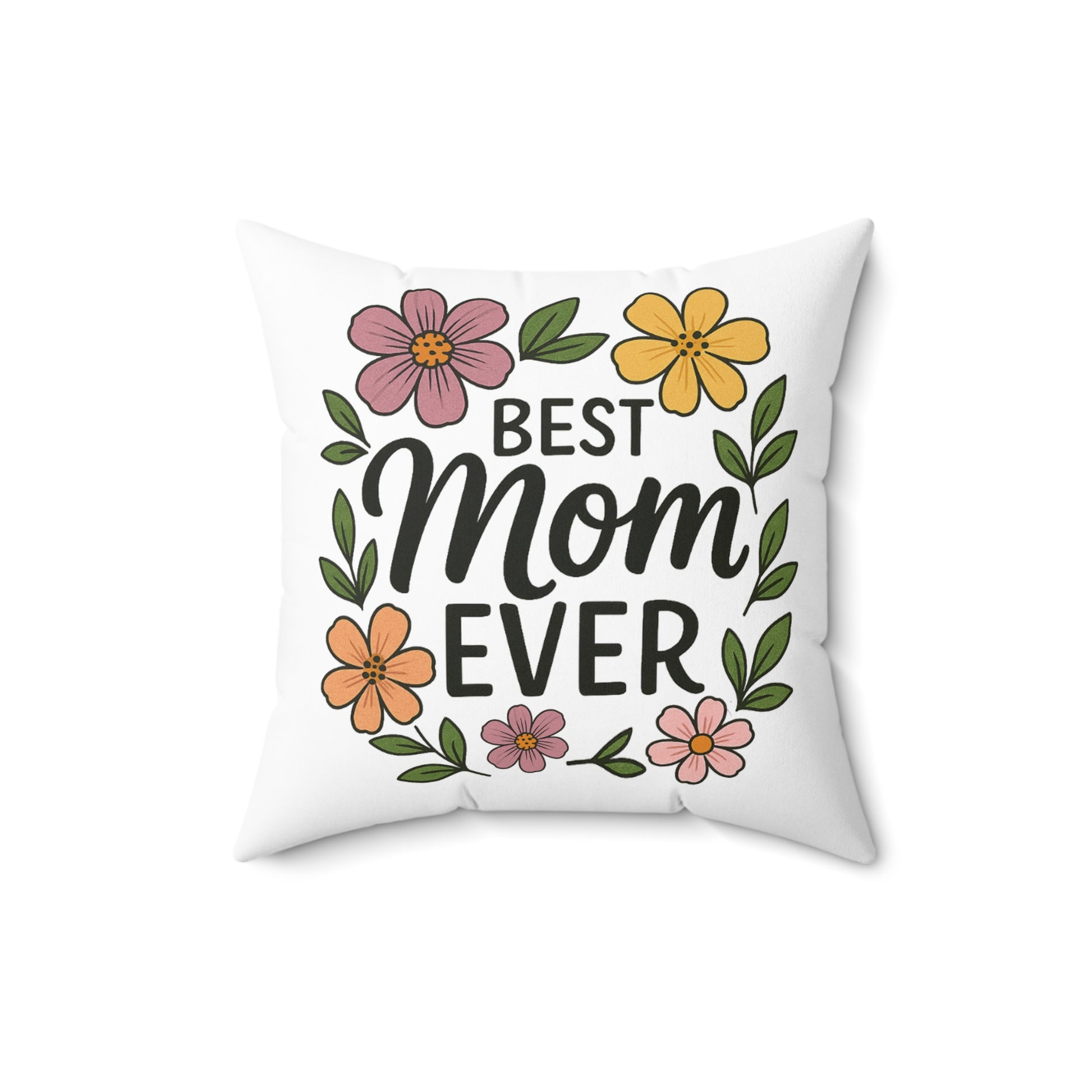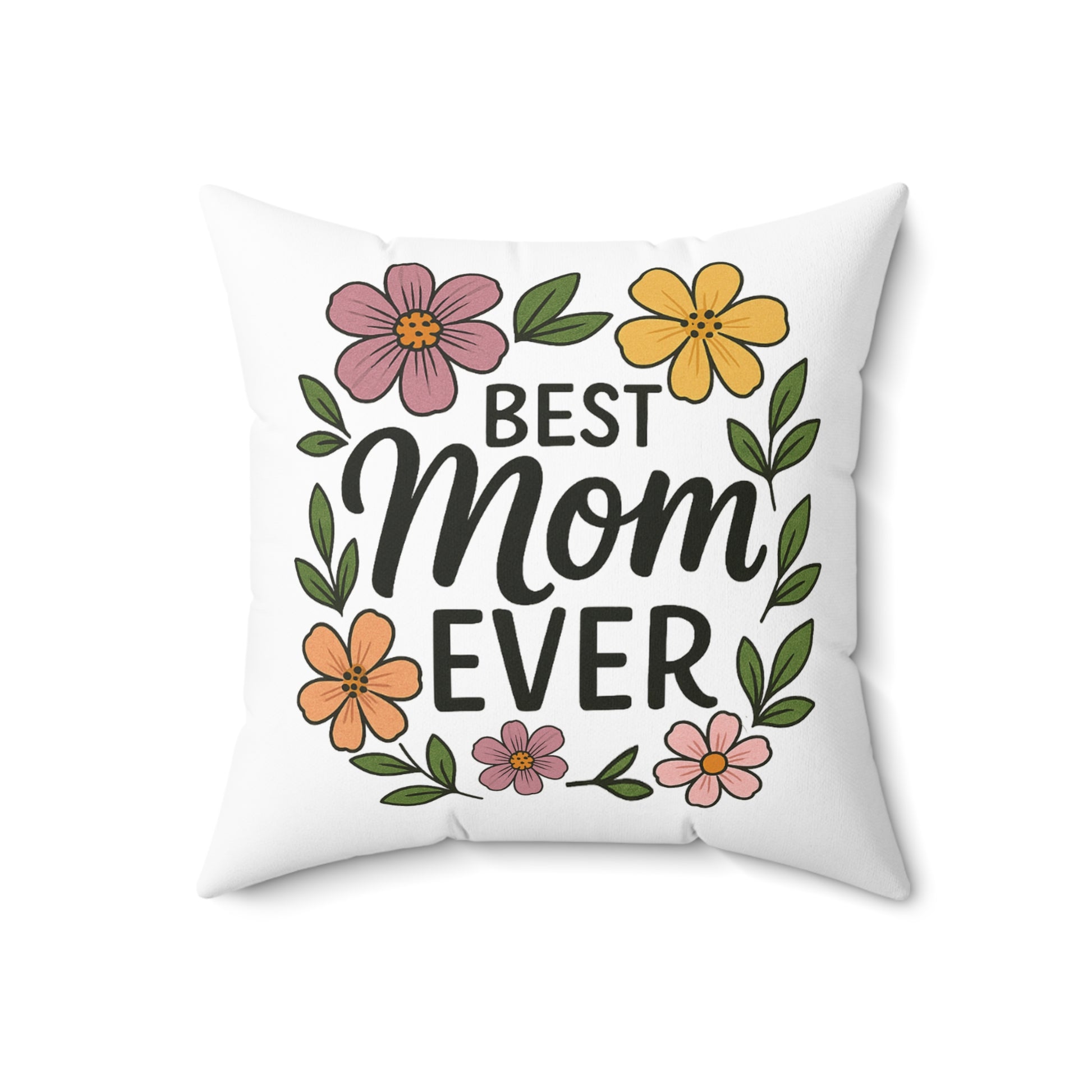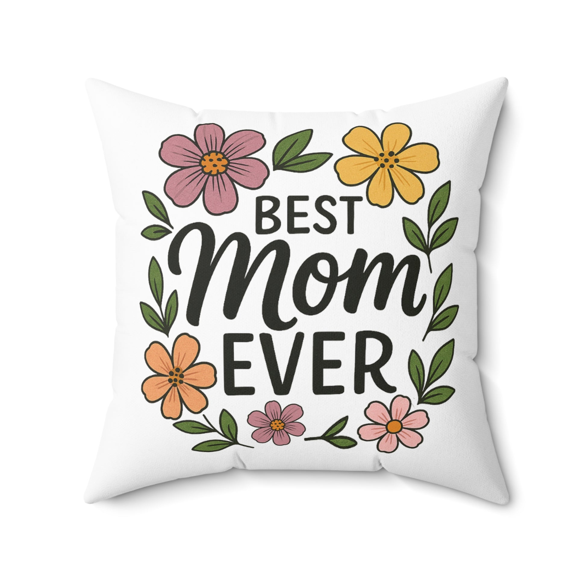 Introducing a beautiful Spun Polyester Square Pillow that brings warmth and vibrancy to any space. This pillow showcases a charming floral design with the phrase "Best Mom Ever," making it a perfect accent for living rooms, nurseries, or bedrooms. The inviting colors and elegant typography create a cheerful atmosphere, emphasizing love and appreciation. Ideal for Mother's Day, birthdays, or simply as a surprise to brighten a loved one's day, this pillow is sure to resonate with thoughtful gift-givers and anyone looking to elevate their home decor. A wonderful addition for moms, grandmothers, or anyone in your life who deserves a little extra love!