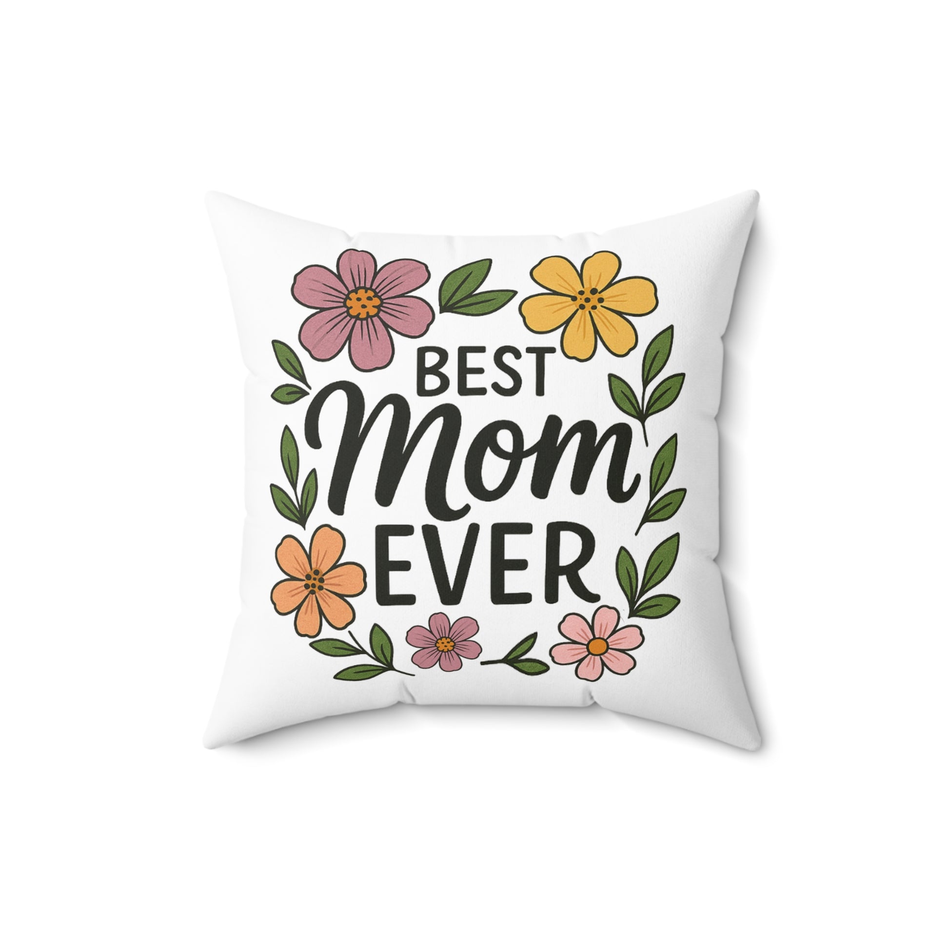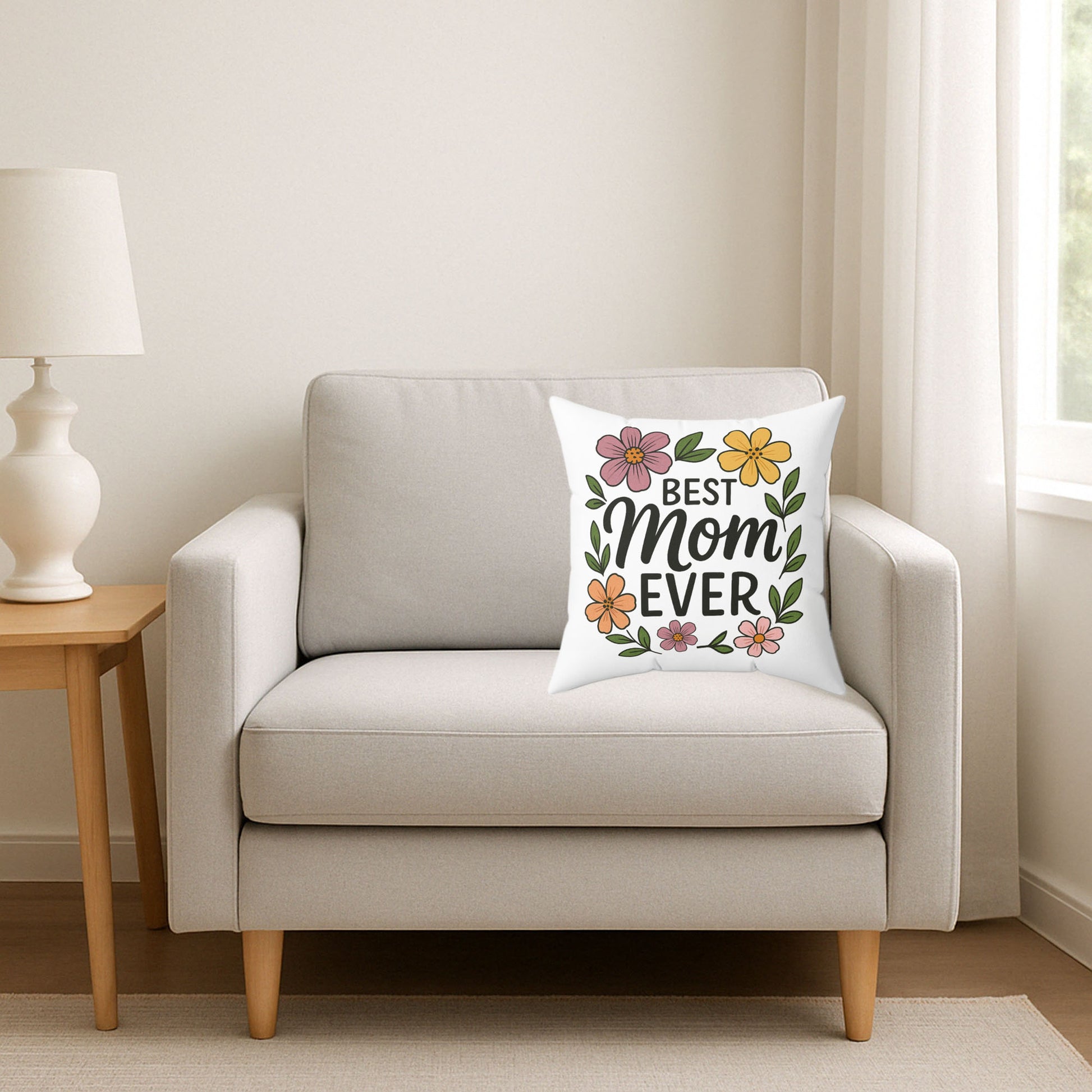 Best Mom Ever Floral Square Pillow, Gift for Mom, Mother's Day Decoration, Throw Pillow, Home Décor, Cozy Living Room Accent