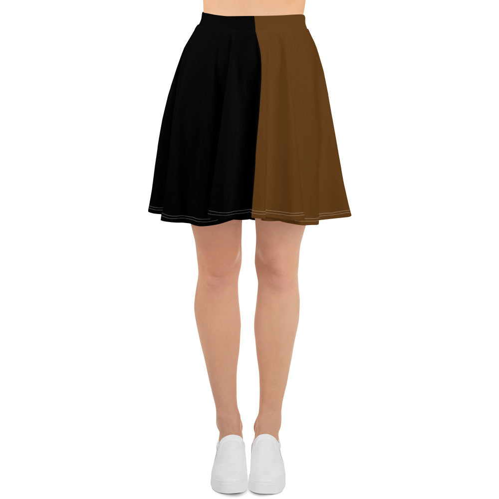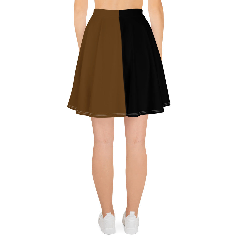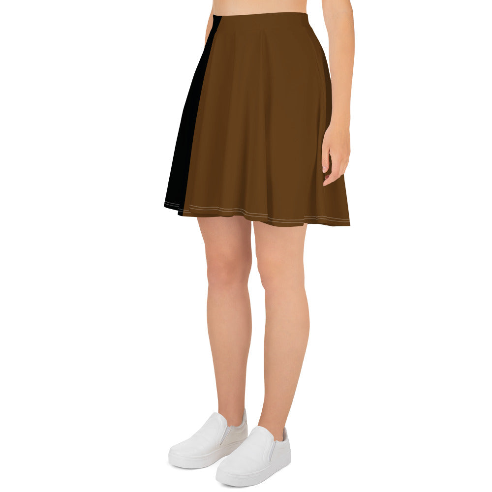 Our brown and black skater skirt is made of soft fabric. It is bound to be your favorite. The flattering silhouette looks great on any body type, and thanks to the elastic waistband, you'll feel extra comfy.