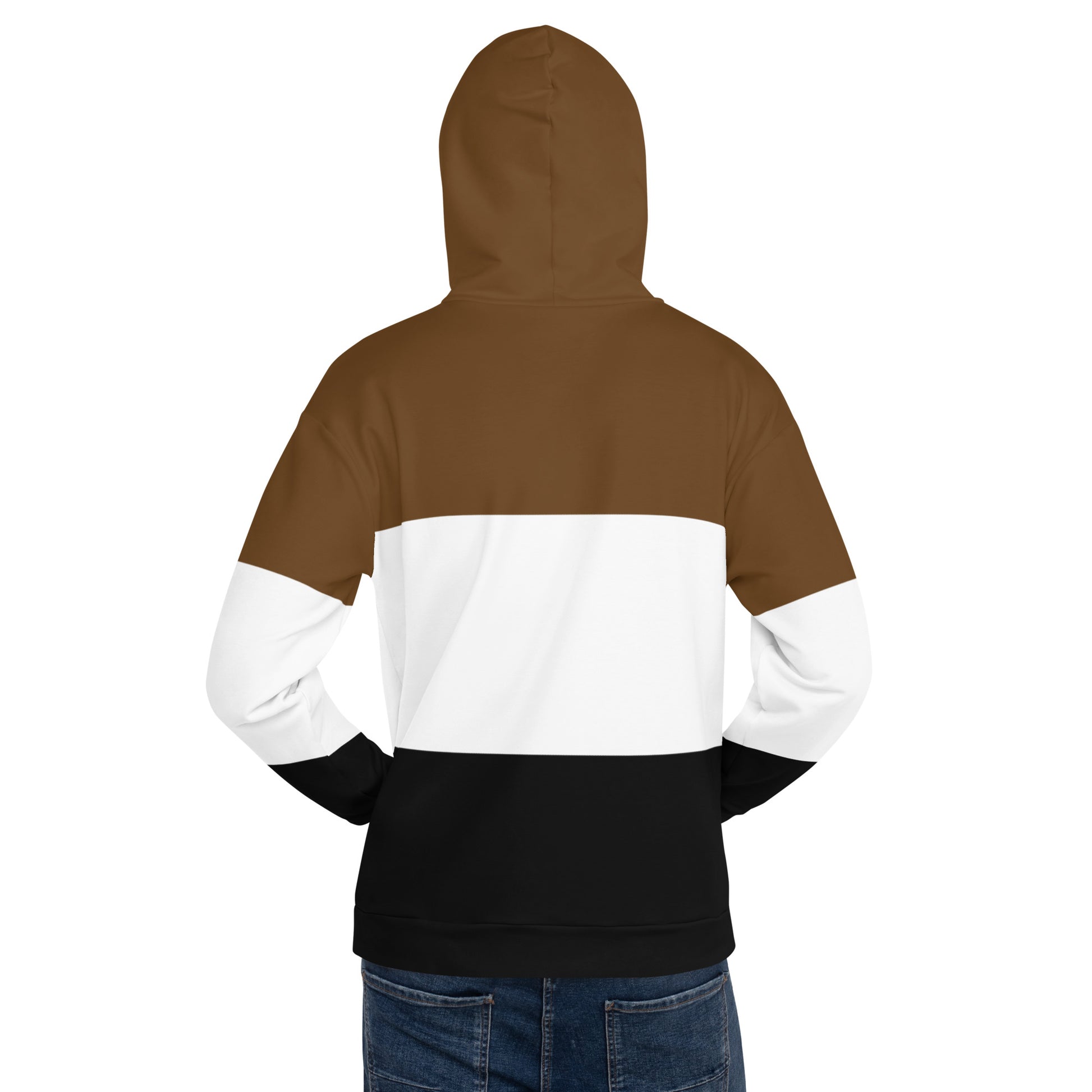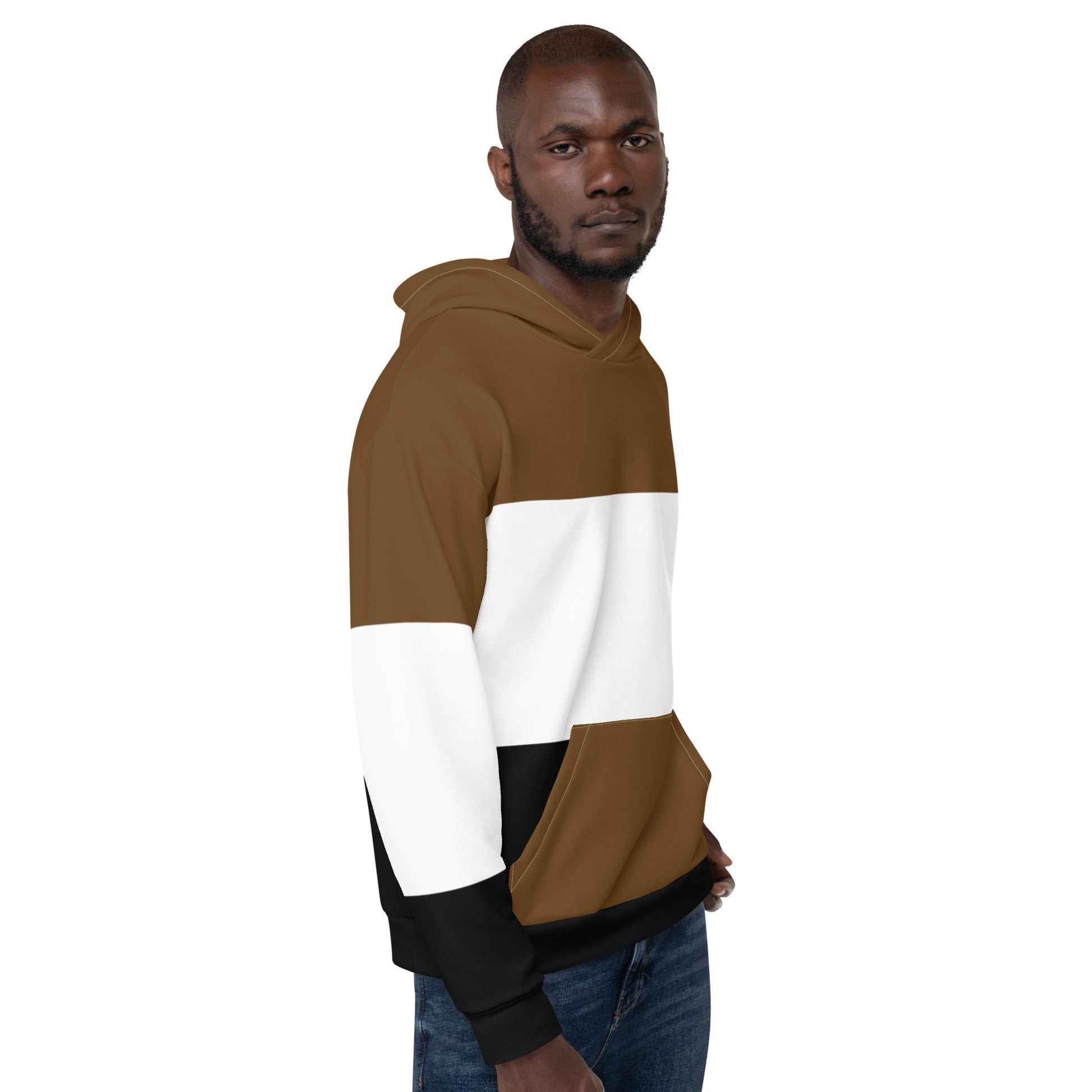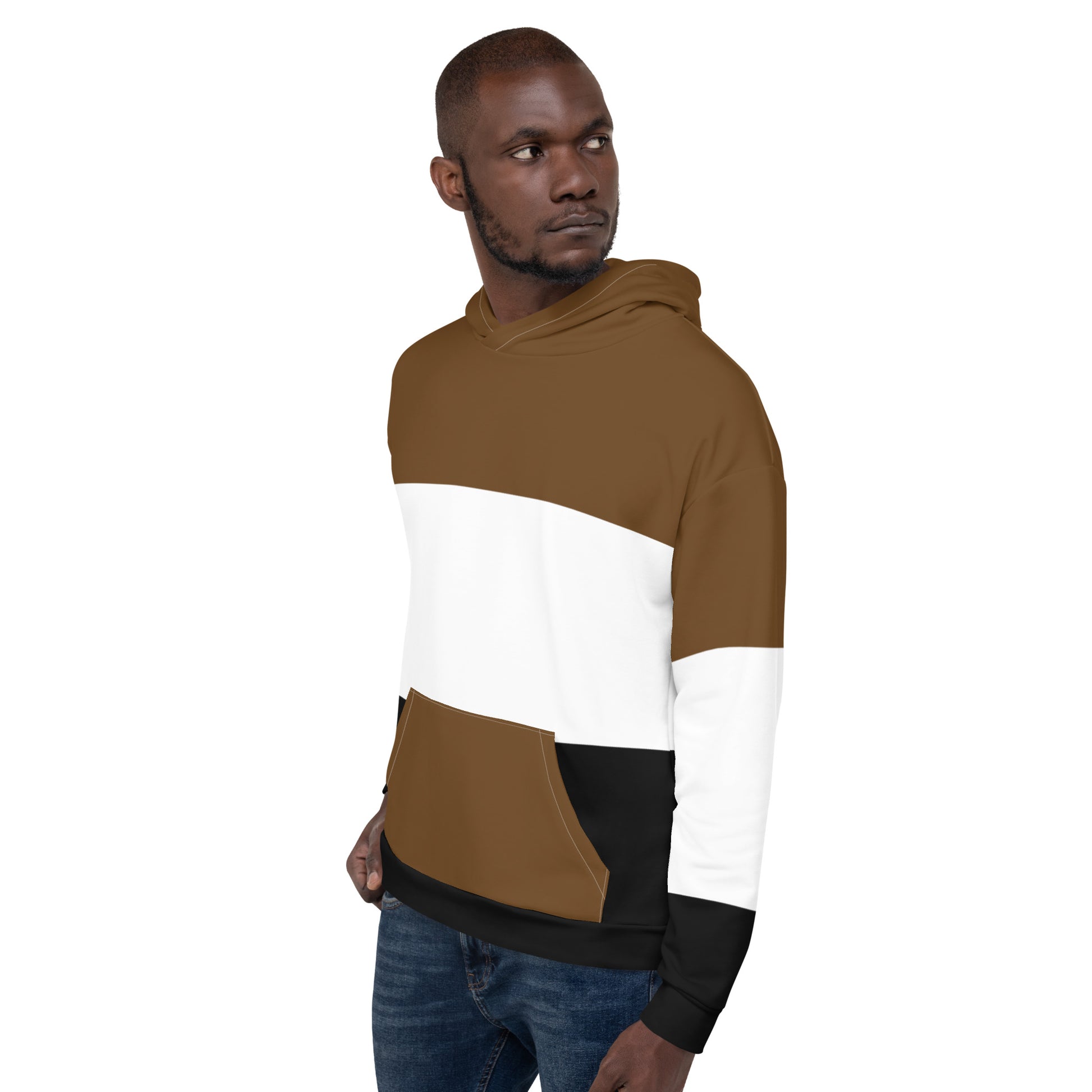 Brown White and Black Colorblock Men Hoodie