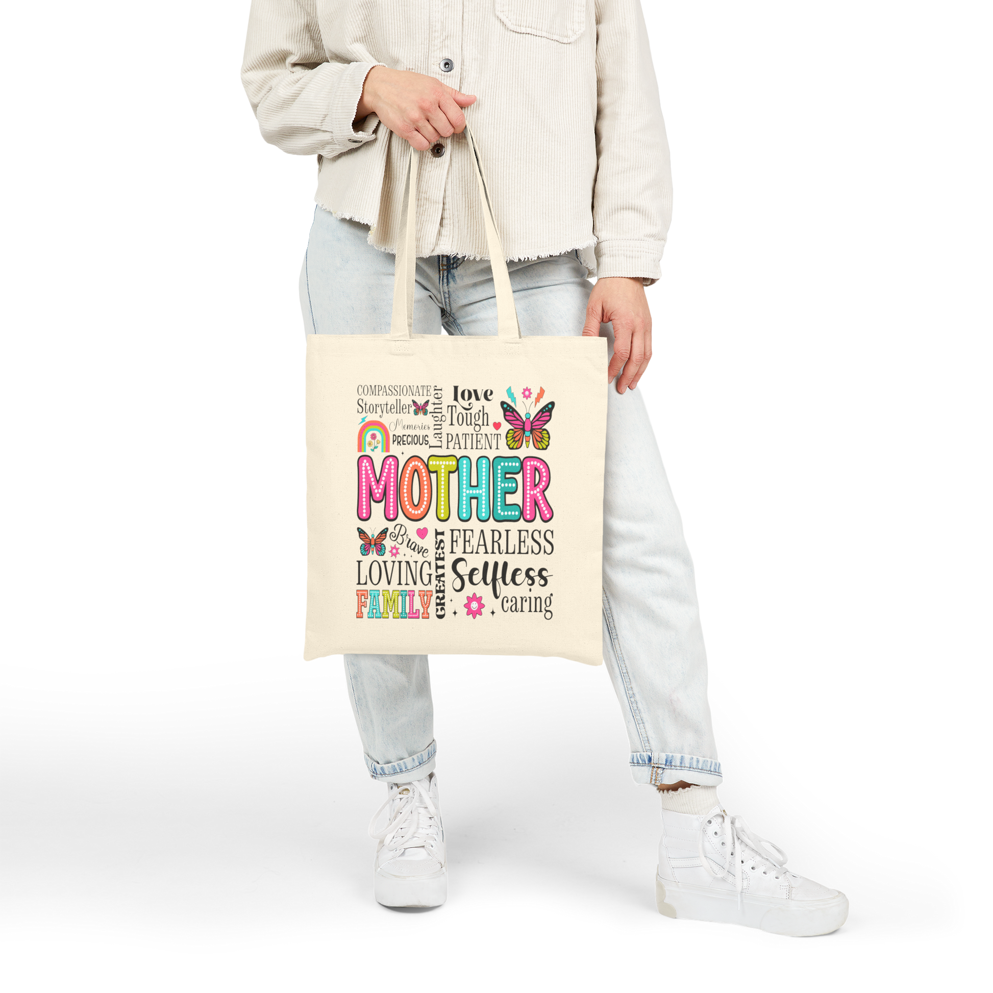 Colorful Mother's Day Cotton Canvas Tote Bag, Gift for Mom, Eco-Friendly Bag, Reusable Grocery Tote, Family Love Bag, Caring Tote