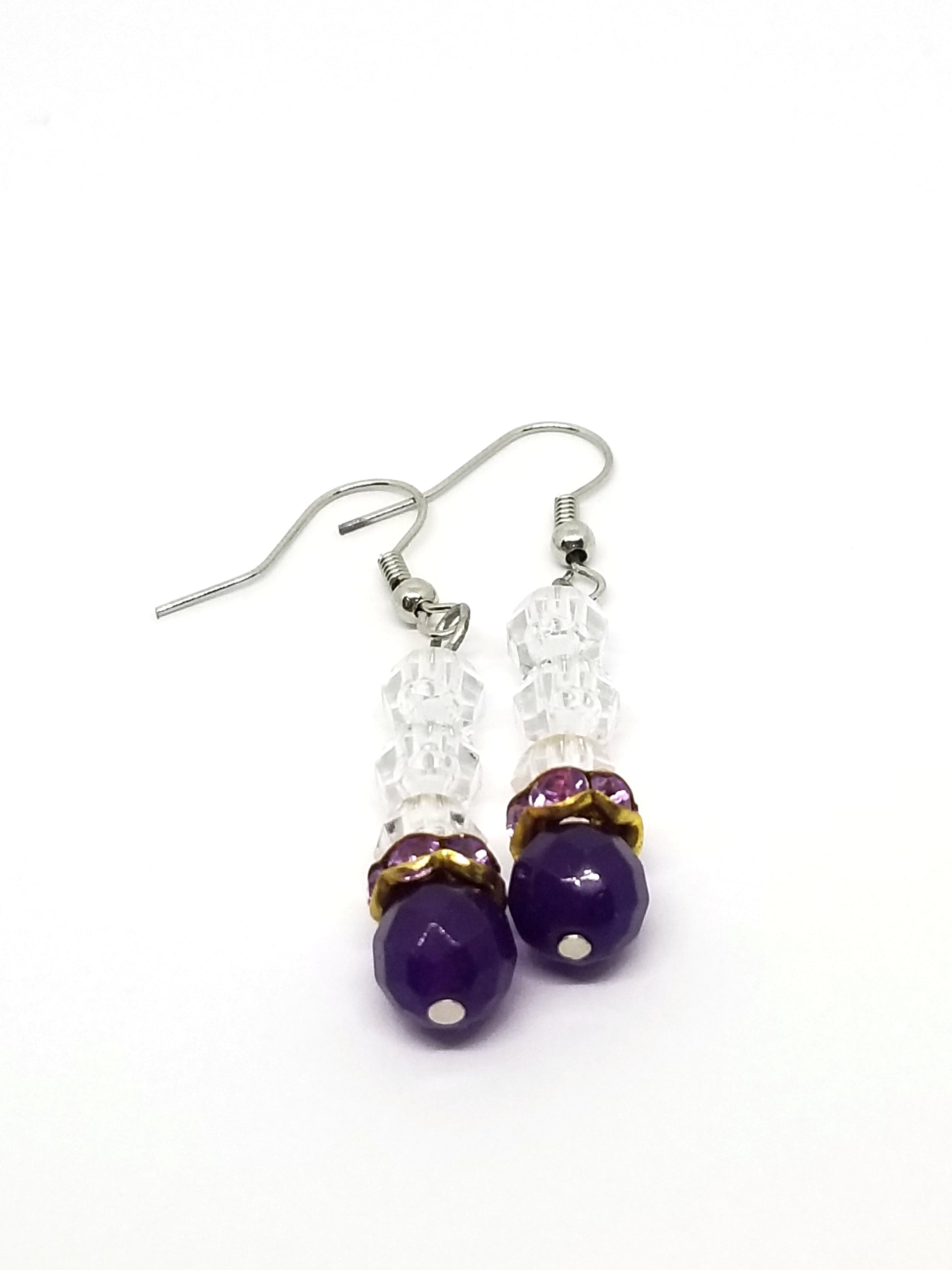 Infuse a touch of glamour into your jewelry collection with these exceptional earrings, curated to elevate any ensemble. Skillfully crafted with lustrous purple amethyst round beads, complemented by the sparkle of clear glass crystals, Tibetan gold bronze daisy spacers, and secured with hypoallergenic surgical steel ear wires, these earrings are a harmonious blend of style and quality.