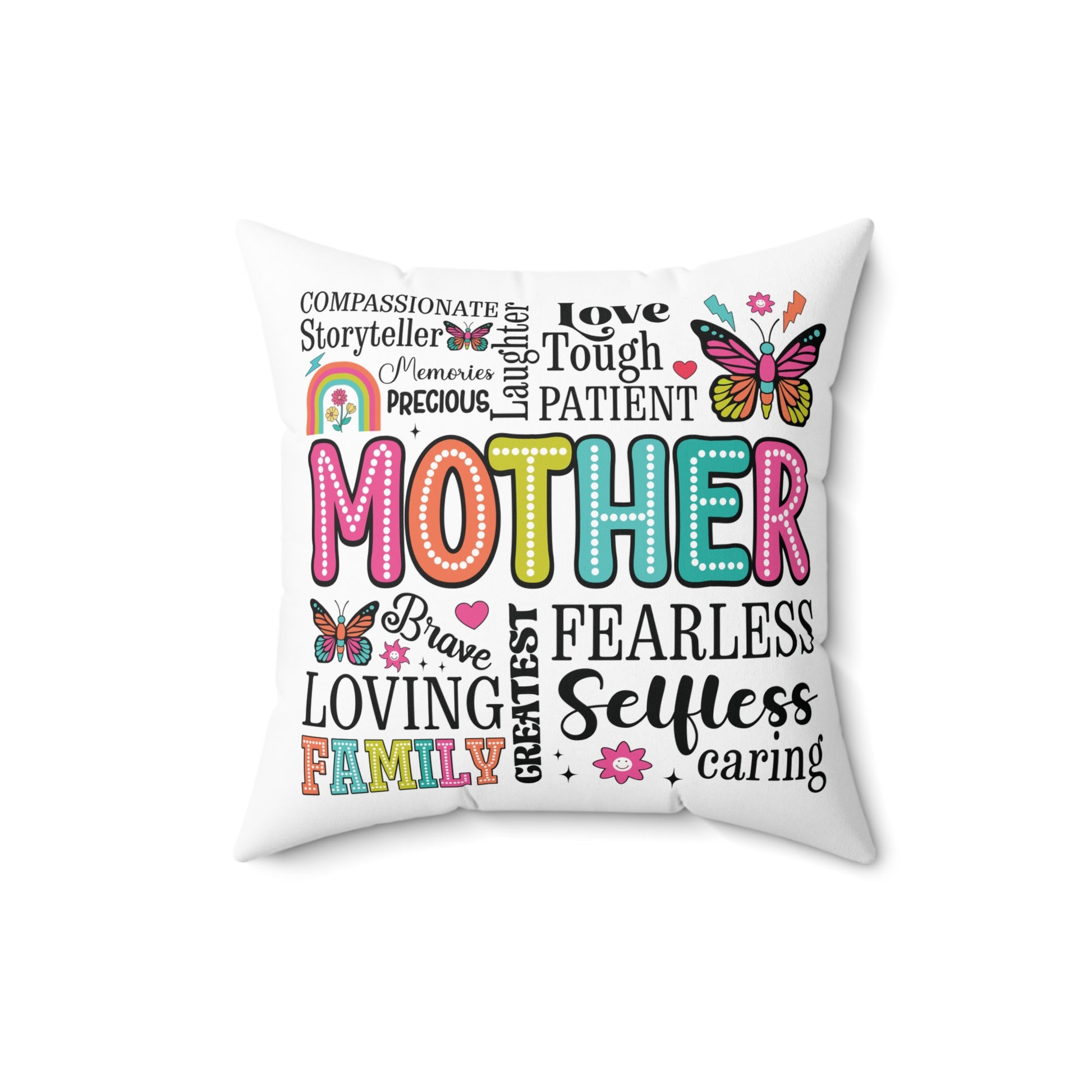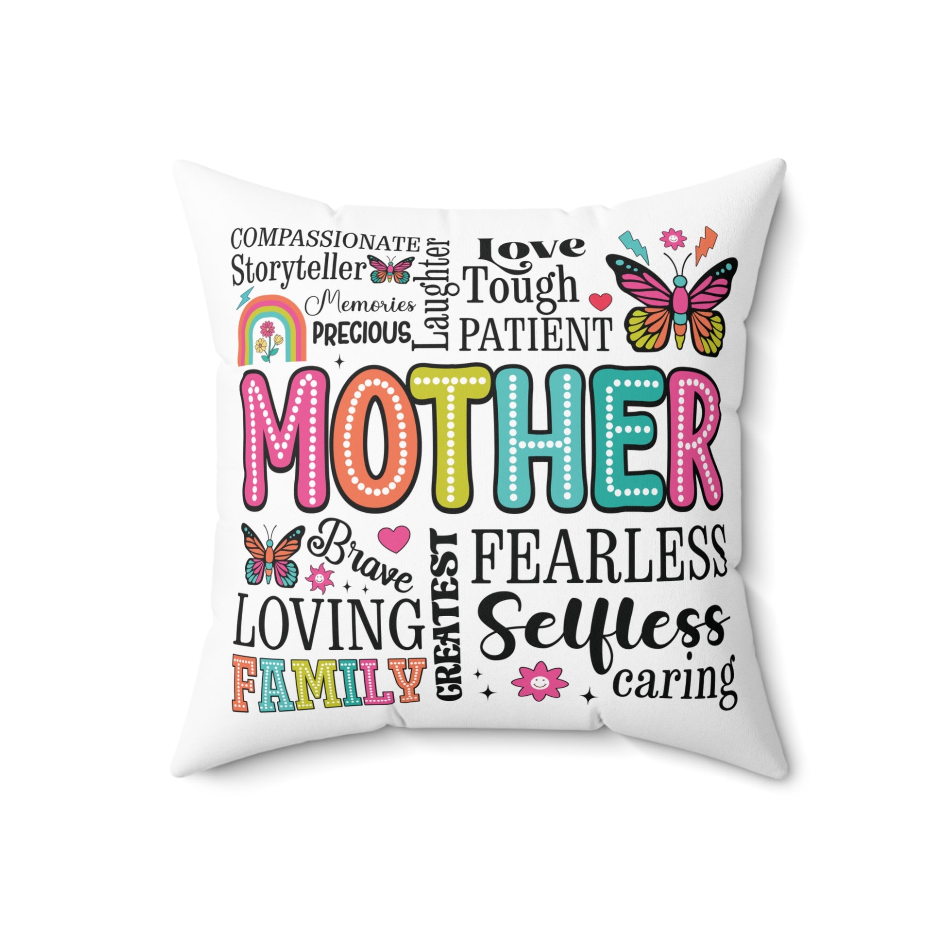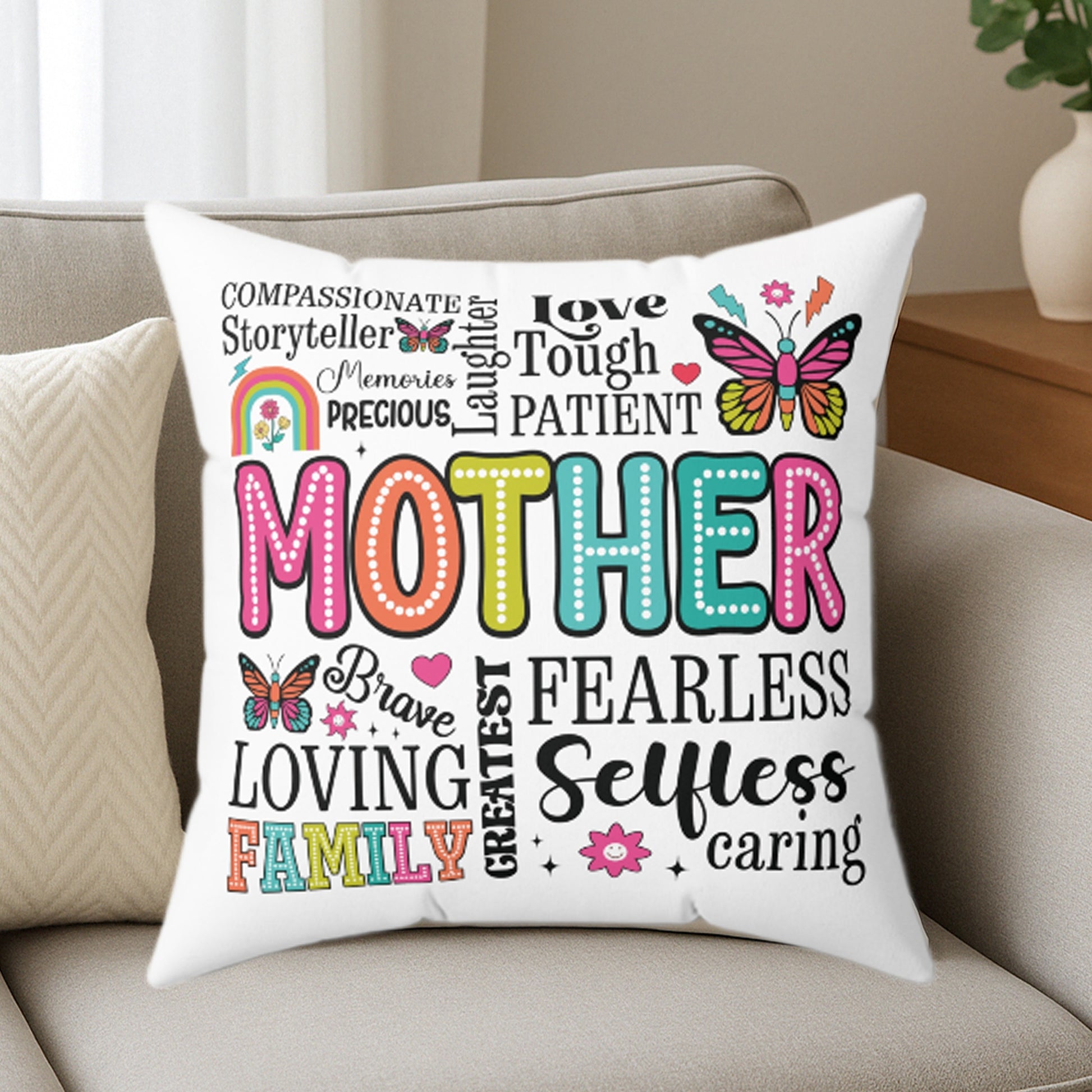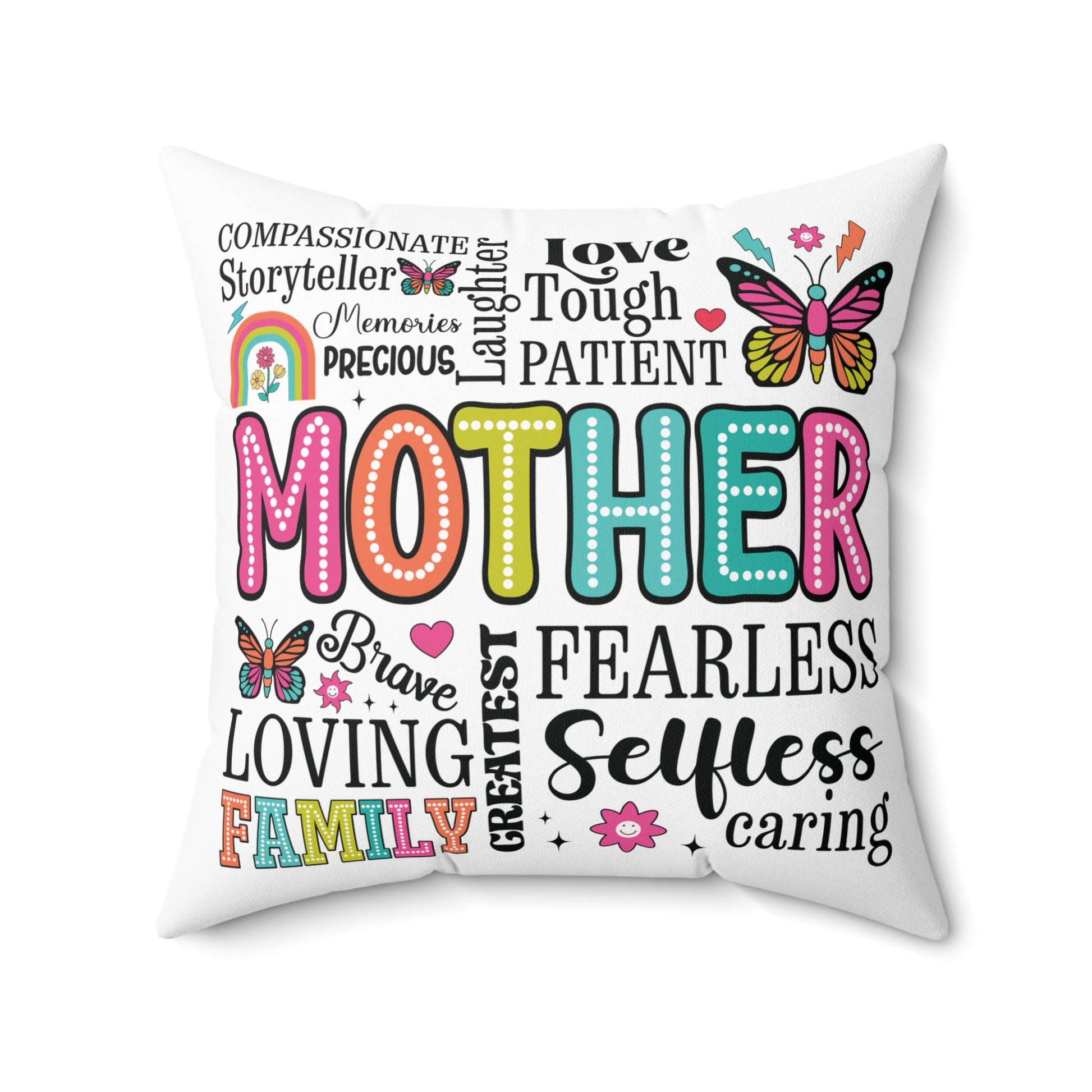 Elevate your home decor with this vibrant and heartfelt pillow! Our square pillow adds a splash of color and warmth to any room, creating a cozy atmosphere. Perfect for mothers or anyone wanting to express love and appreciation, it serves as a lovely statement piece in your living room, bedroom, or family space. Ideal for Mother's Day, birthdays, or just because, this pillow makes a thoughtful gift for the special women in your life. Celebrate their strength and caring nature while enhancing your home’s ambiance with this charming addition!
