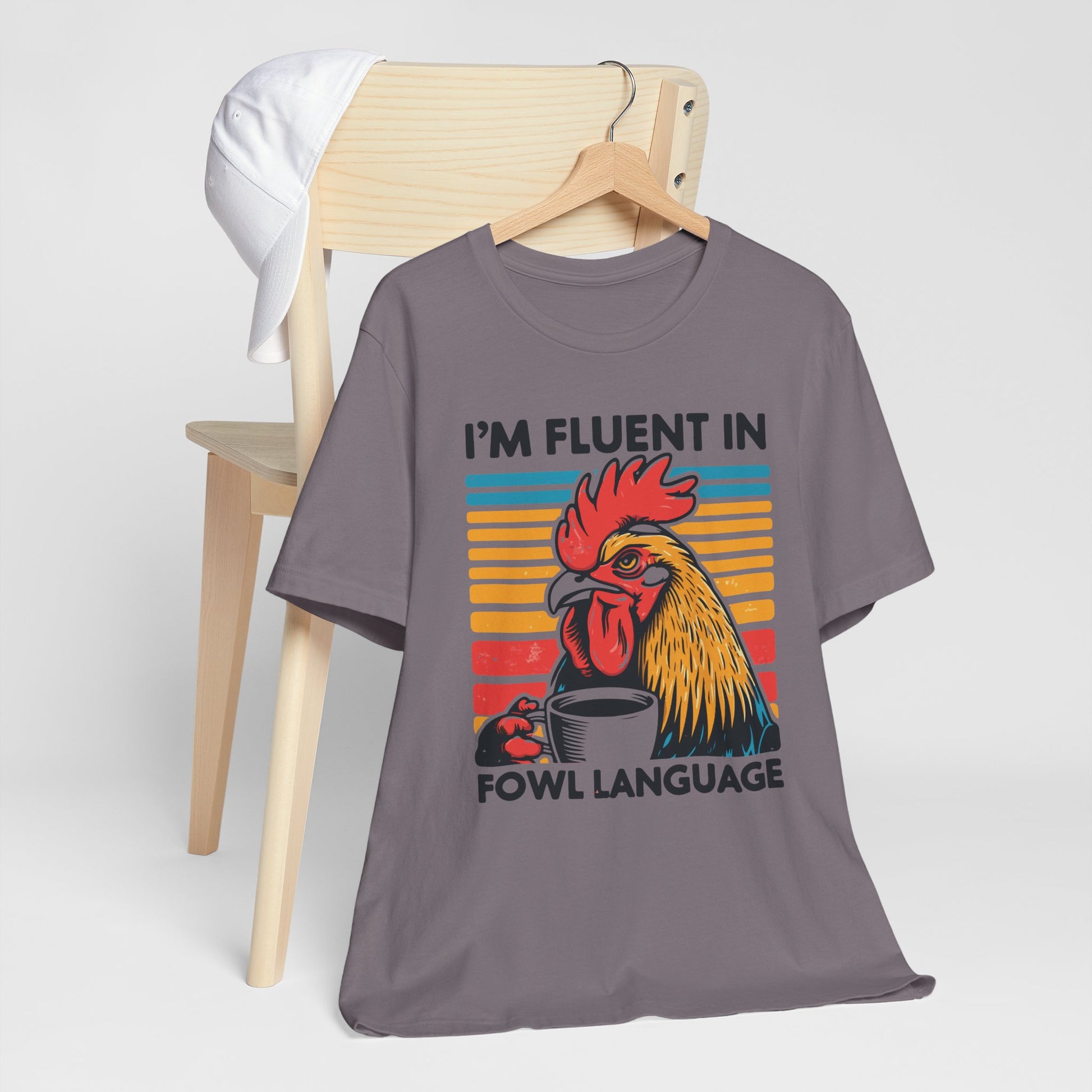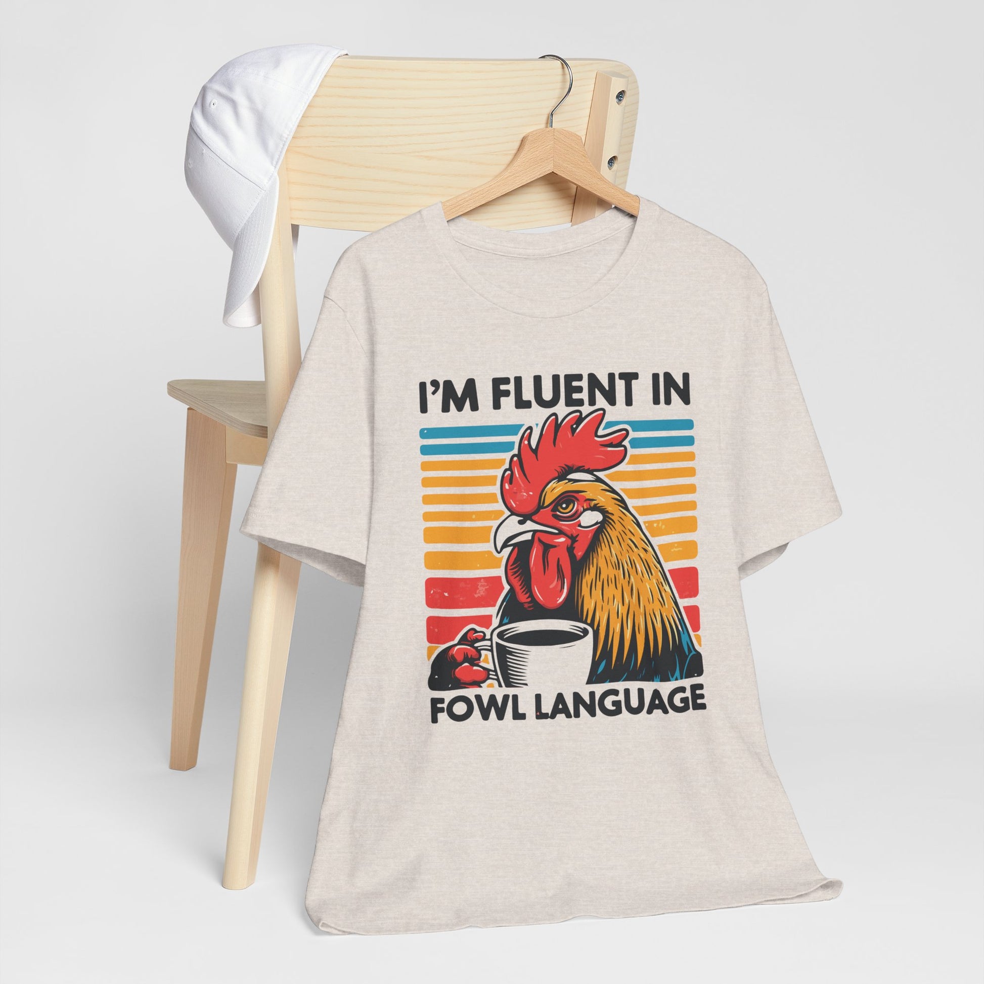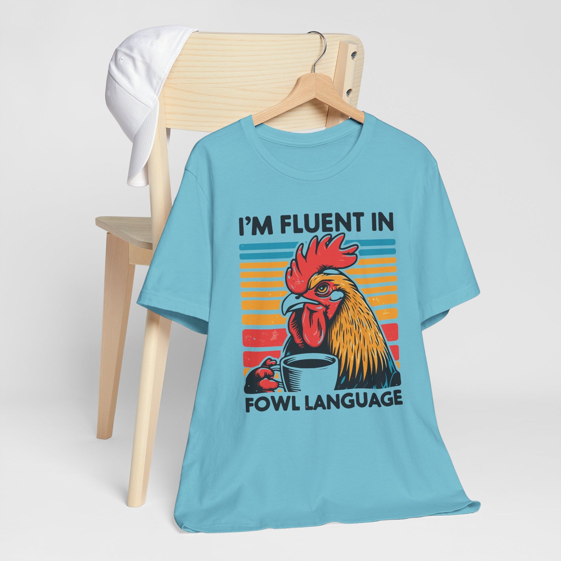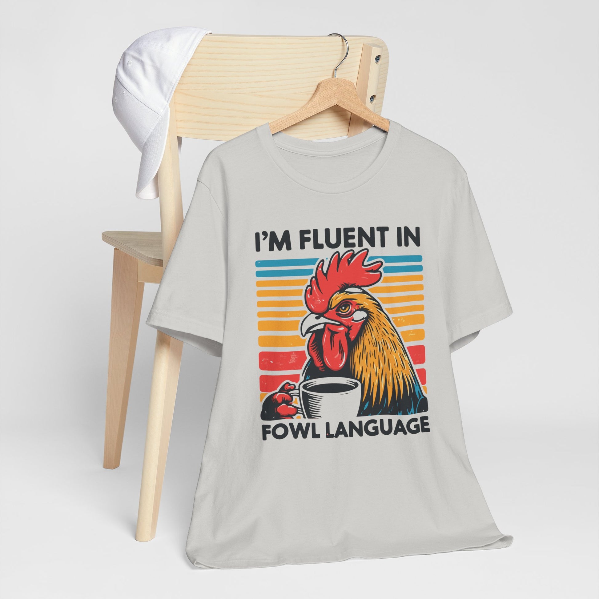 Fluent in Fowl Language Tee - Humorous Chicken Graphic T-Shirt for Animal Lovers