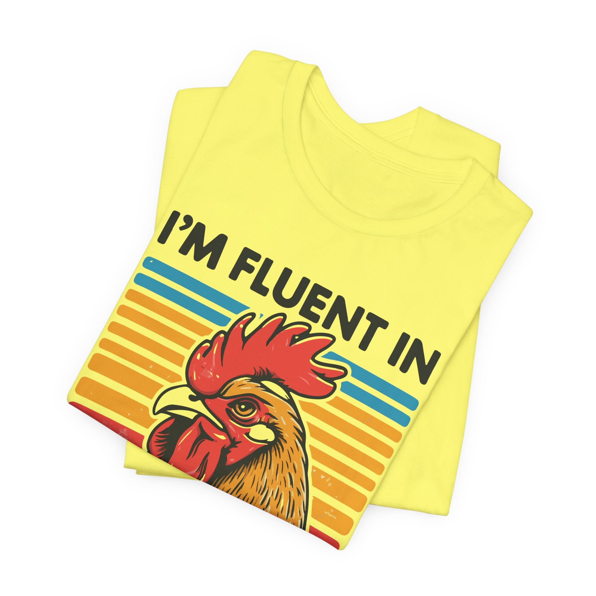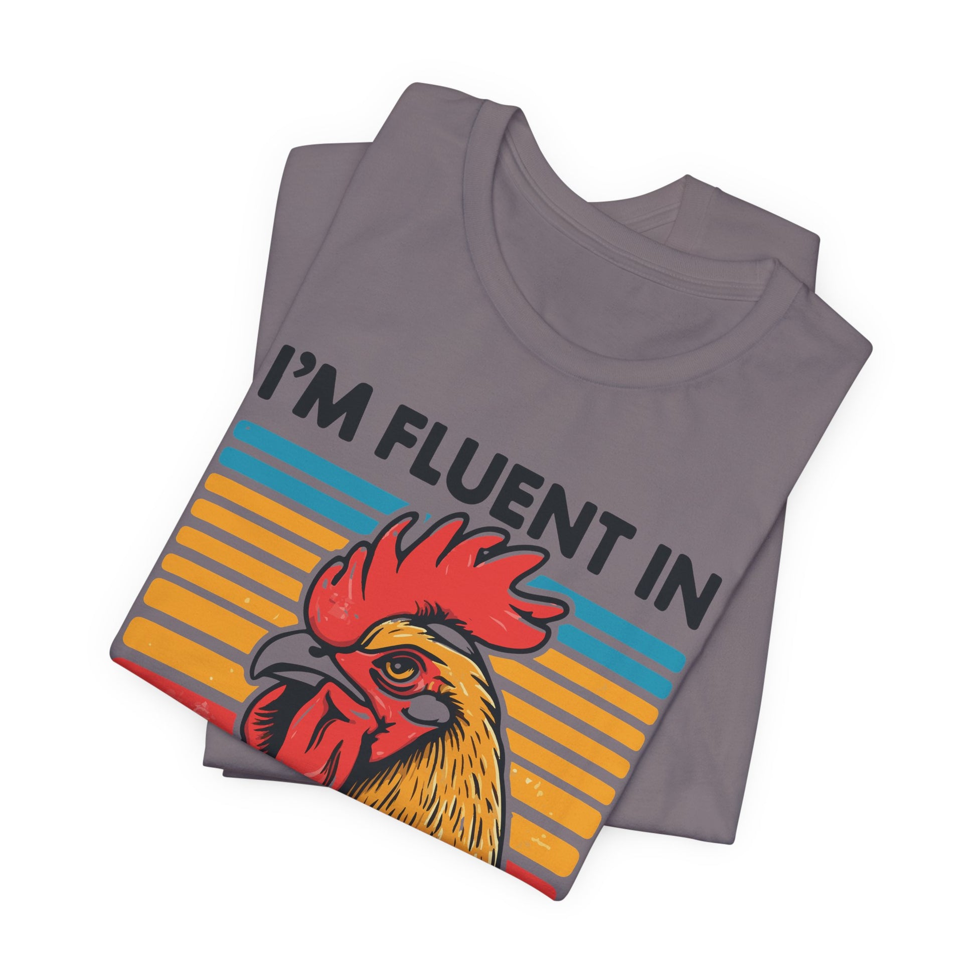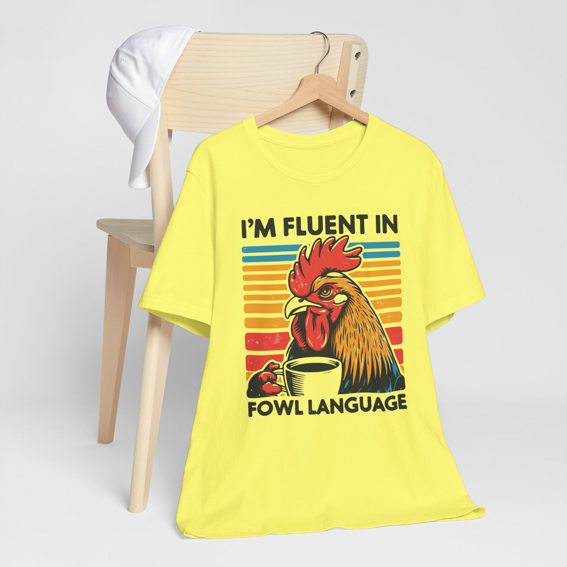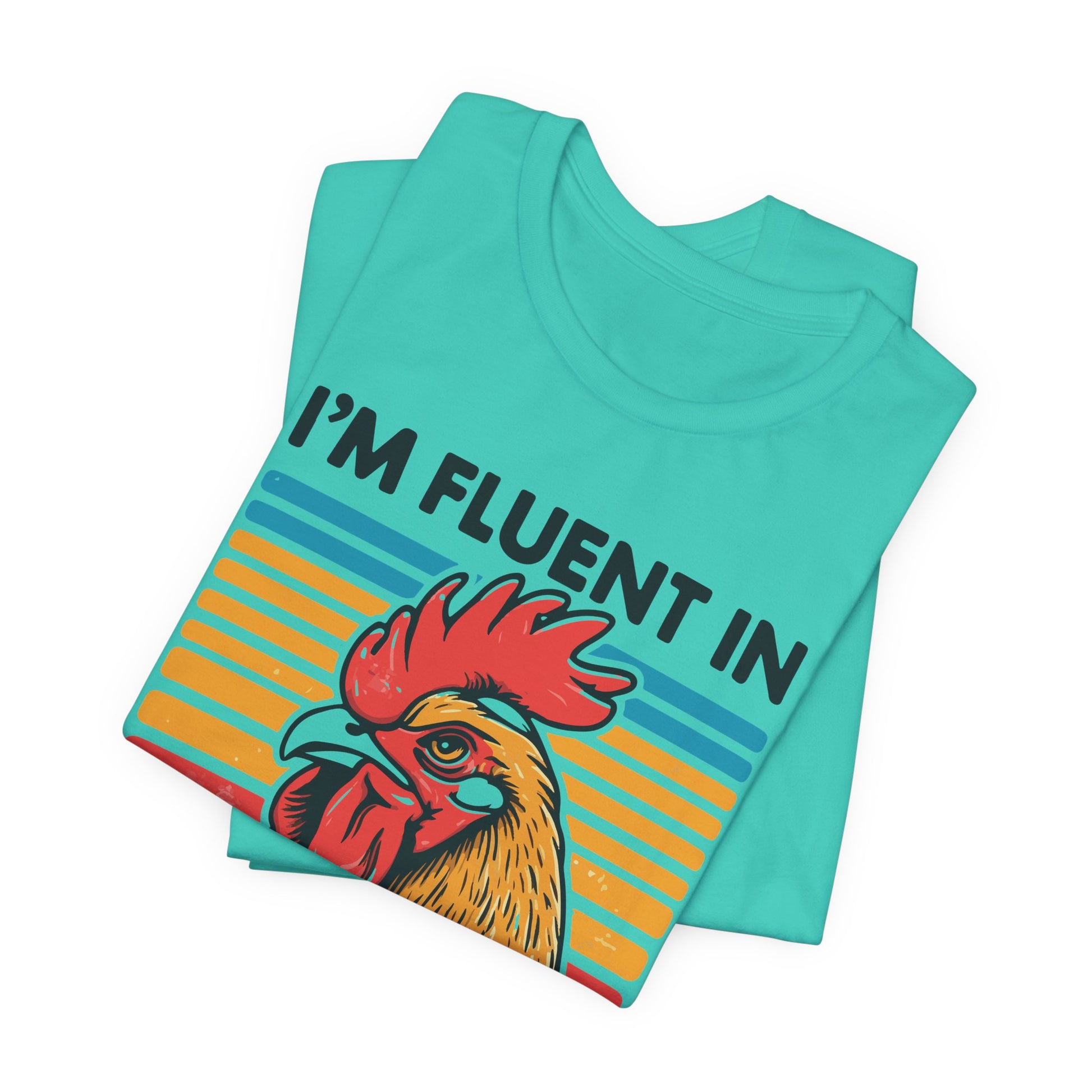 Fluent in Fowl Language Tee - Humorous Chicken Graphic T-Shirt for Animal Lovers