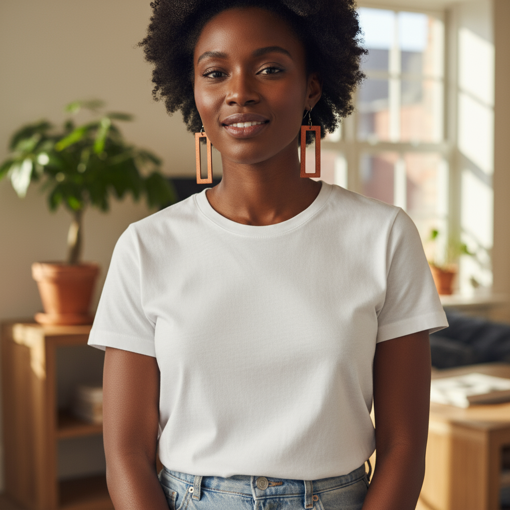 Make a vibrant and unique statement with these Hand-Painted Orange Rectangular Wooden Earrings. Each pair features a bold rectangular wooden drop, meticulously hand-painted in lively shades of orange and sealed for lasting wear. Lightweight and eye-catching, they’re crafted for the woman who loves artisan style and stands out from the crowd.
