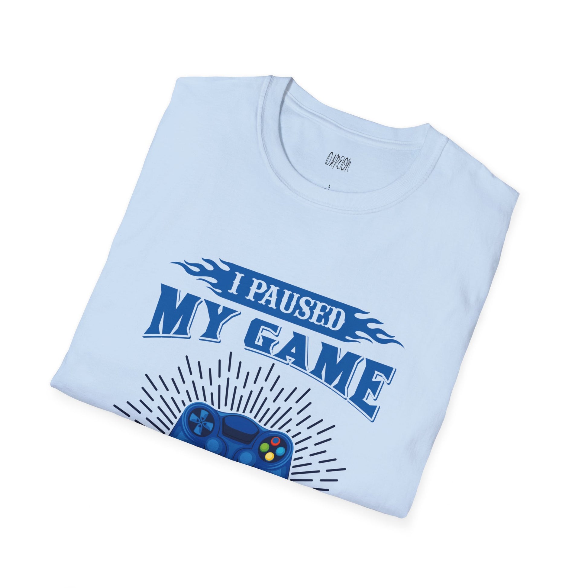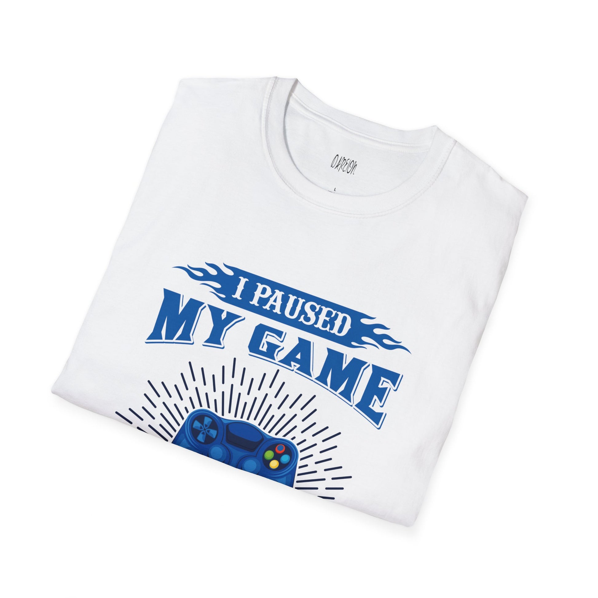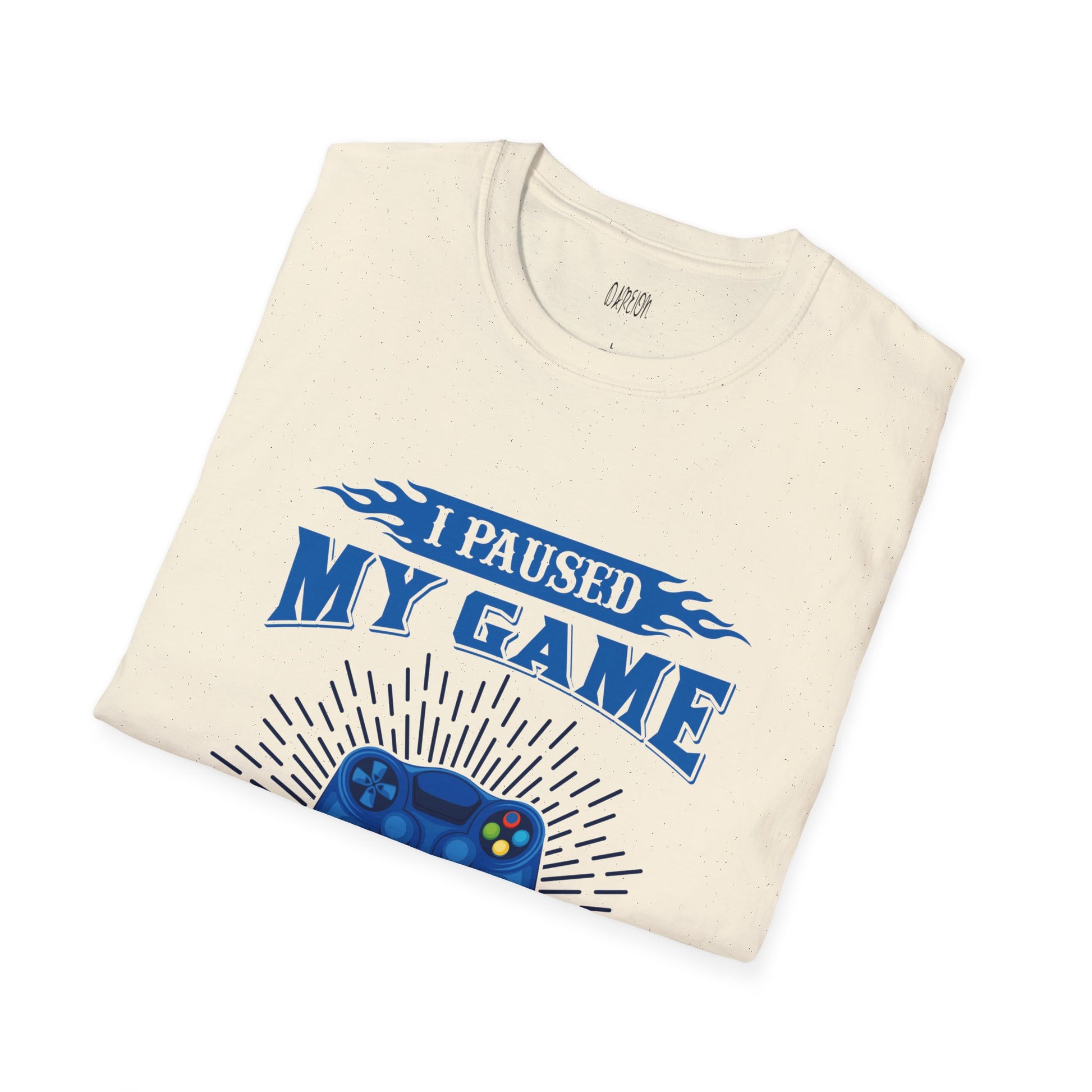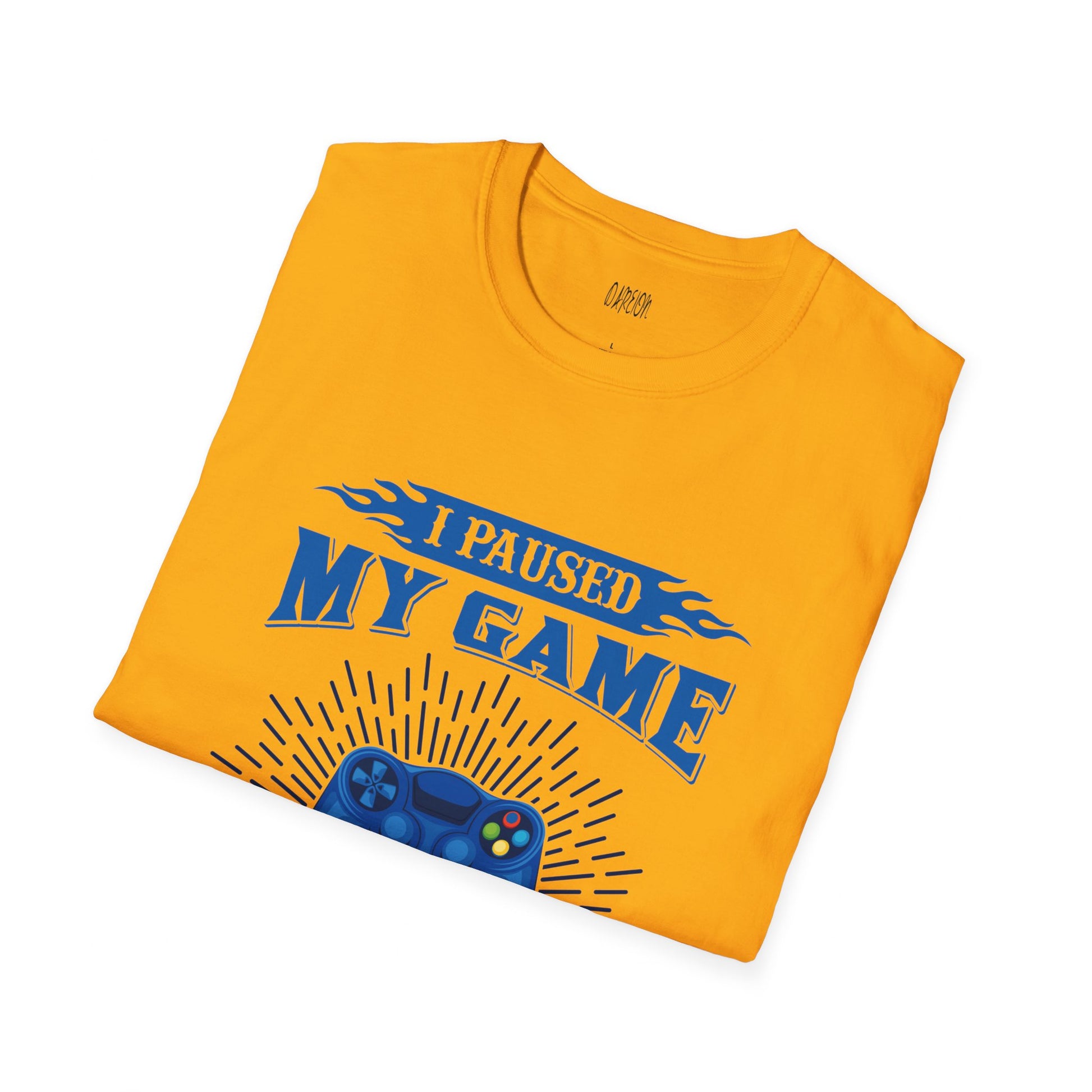 Level up your casual wardrobe with our "I Paused My Game to Be Here" t-shirt! This unisex soft-style tee redefines comfort with its exceptionally soft materials and lightweight fabric, making it a bliss to wear year-round.