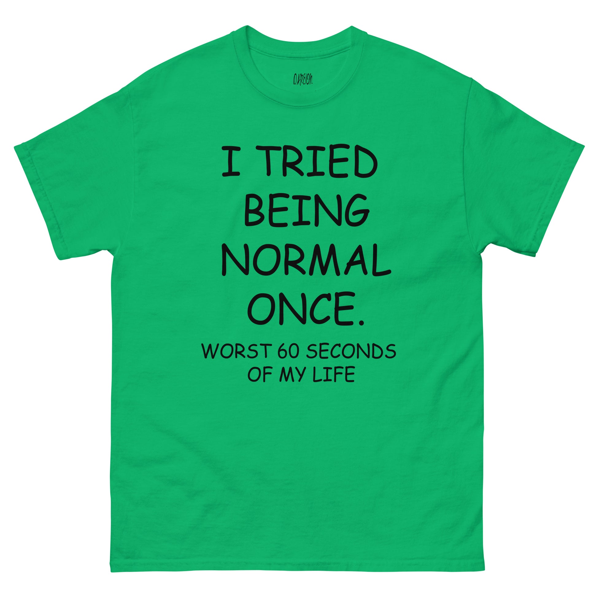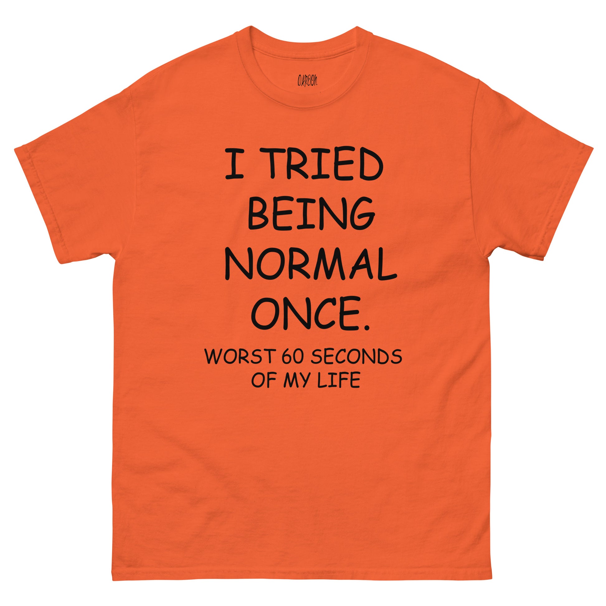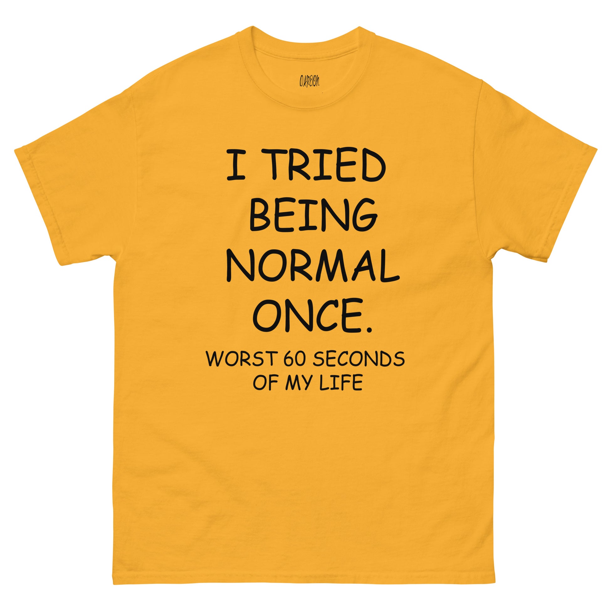 Embrace your individuality with our "I Tried Being Normal Once. Worst 60 Seconds of My Life" unisex t-shirt! Crafted from 100% cotton, this classic tee offers a structured look that sits nicely and maintains sharp lines around the edges. Perfect for anyone. It's an ideal choice for anyone who loves to stand out from the crowd.