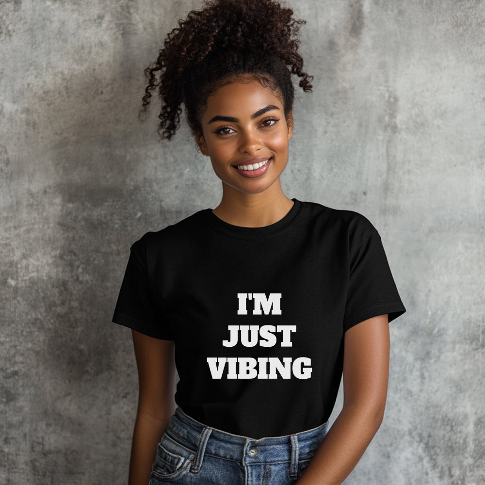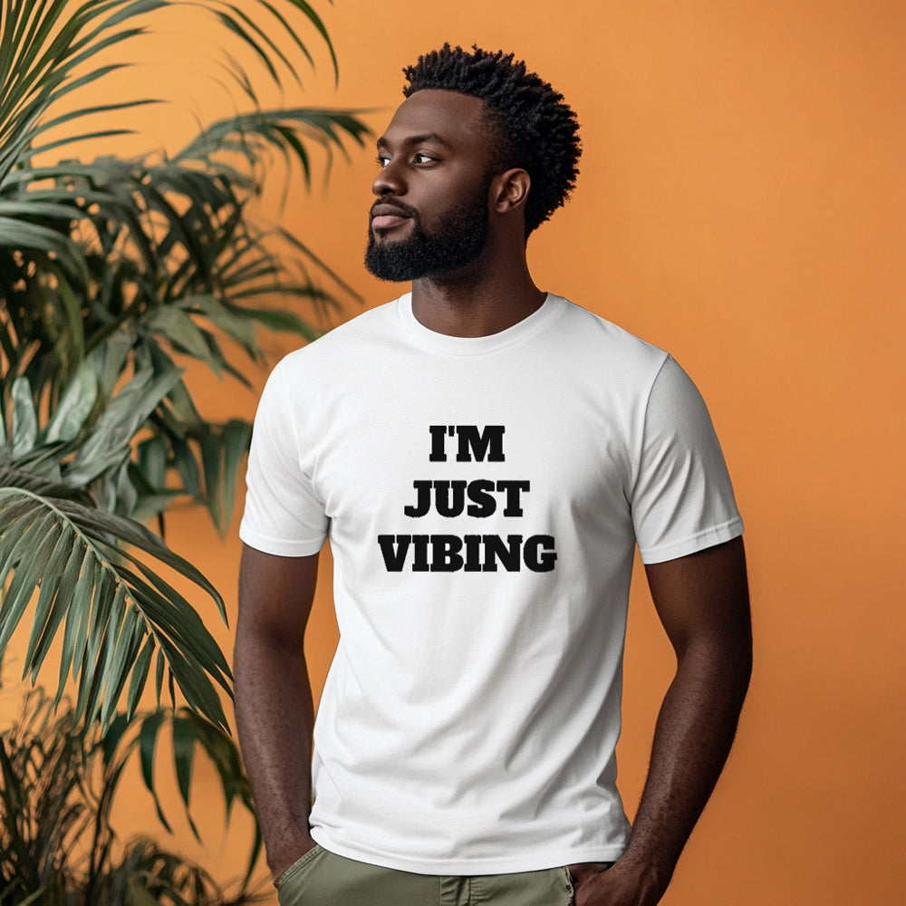The unisex heavy cotton tee is a must-have essential in any wardrobe, providing the perfect foundation for casual style. With the saying 'I'm Just Vibing,' this shirt brings a laid-back, carefree vibe to your everyday look. Made from specially spun fibers, it offers a smooth surface that enhances the vividness and sharpness of the print. The seamless design eliminates irritation under the arms, while taped shoulders add extra durability. Its classic fit ensures comfortable, relaxed wear, and the crew neckline lends a clean, timeless appeal suitable for both casual and semi-formal settings.