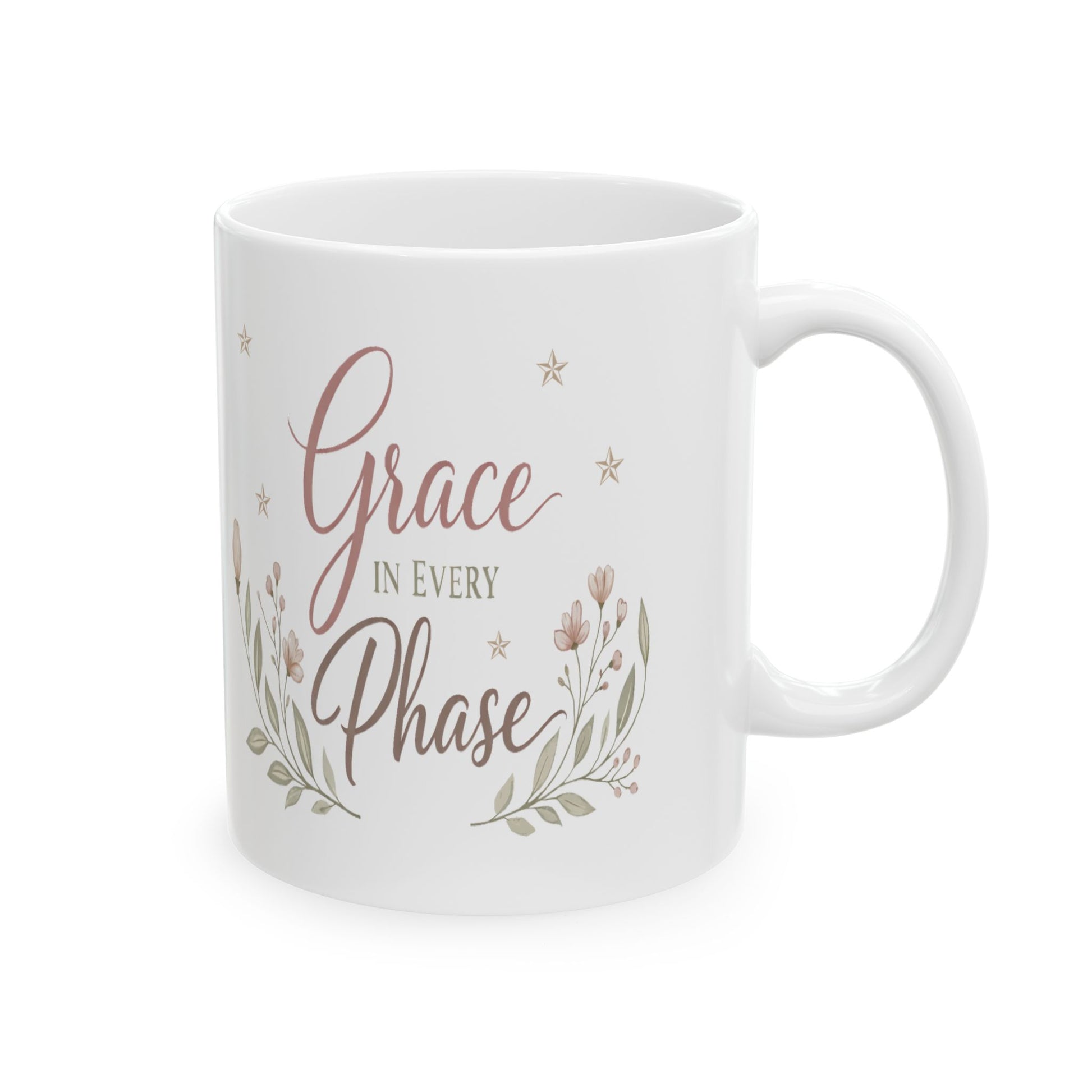 Inspirational Mug for Women | Floral Ceramic Coffee Cup | Grace in Every Phase