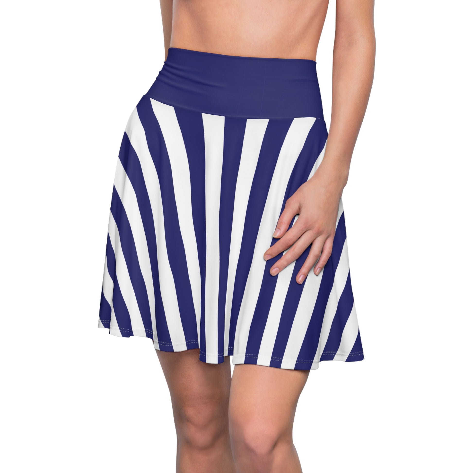 Elevate your style with this chic navy blue striped skater skirt, designed to effortlessly blend comfort and flair. Crafted with a luxurious blend of 95% polyester and 5% spandex, this skirt offers a soft, cozy feel with just the right amount of stretch for all-day comfort. Its versatile fit makes it perfect for any occasion, whether you're dressing up for a night out or keeping it casual for a day at the park. The skirt's playful, free-spirited design is inspired by the boundless creativity of modern fashion, making it a standout piece in your wardrobe.