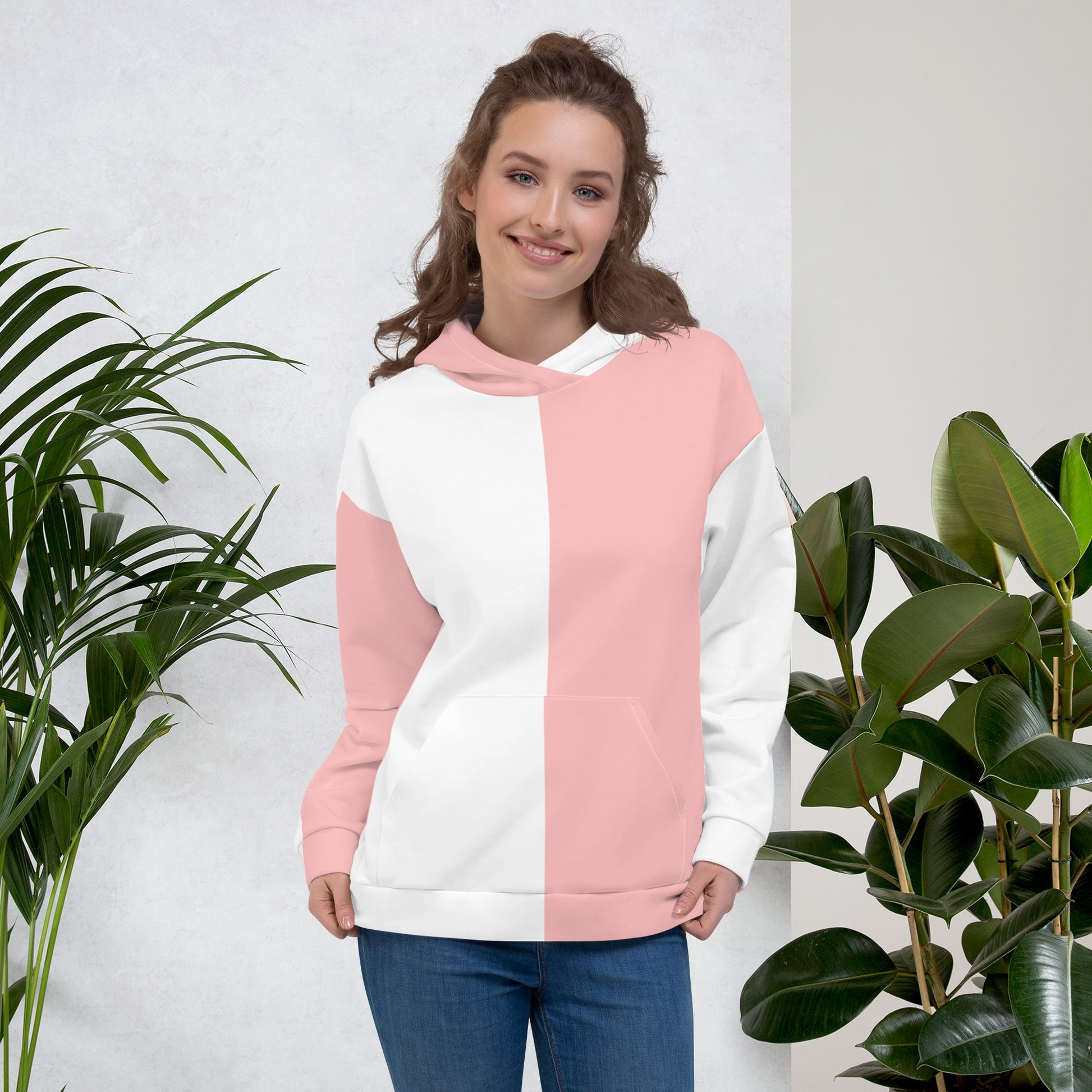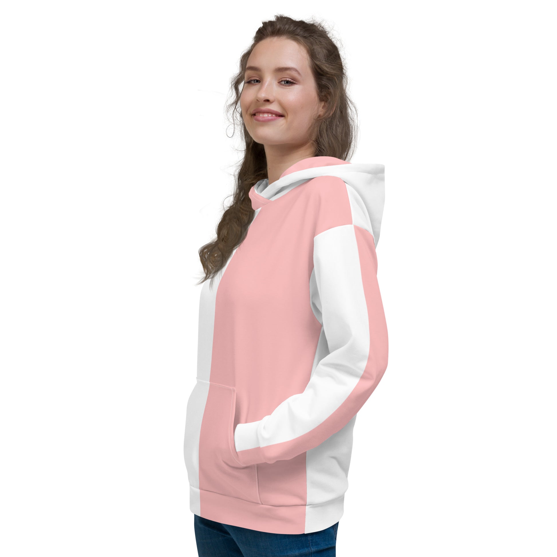 Pink and White Colorblock Hoodie