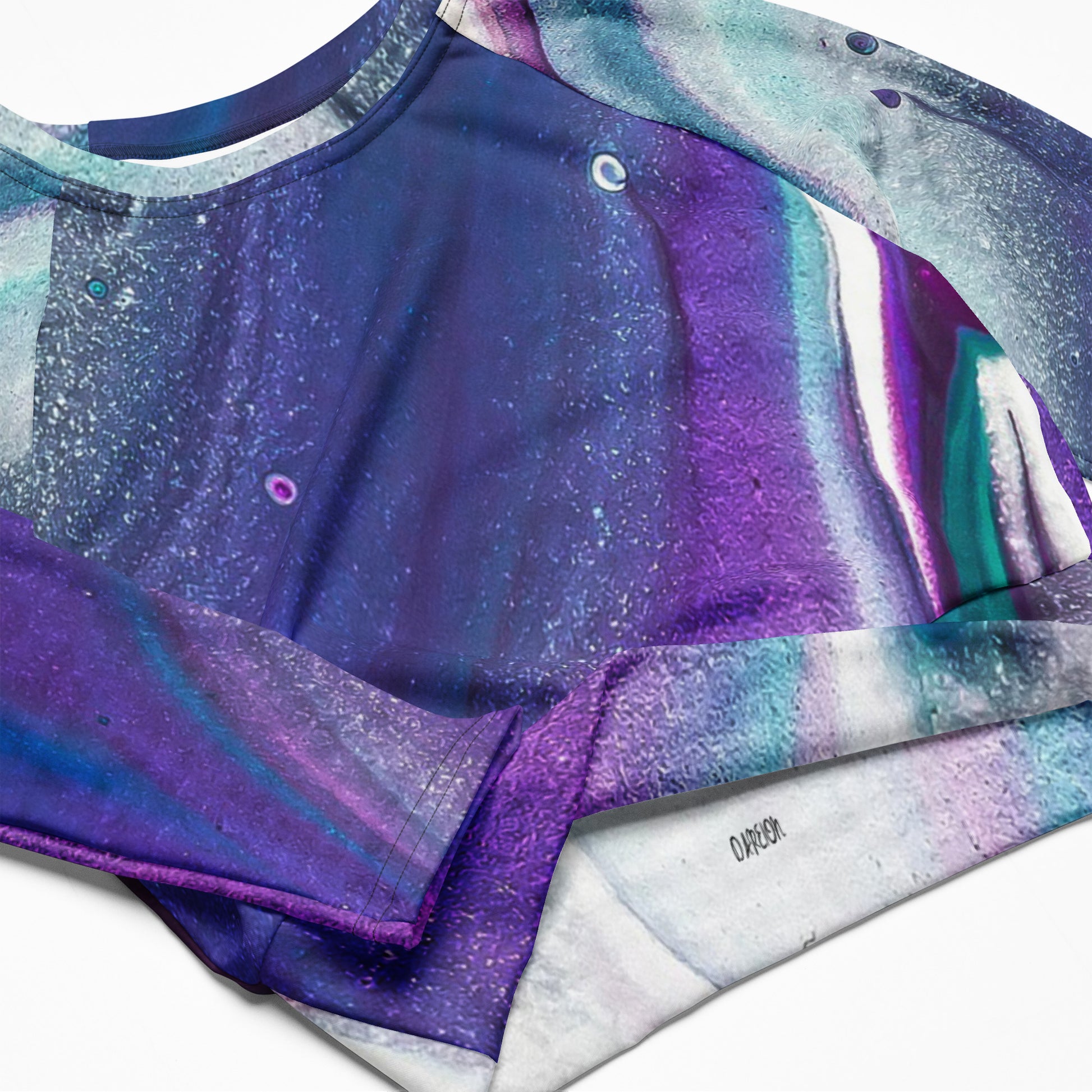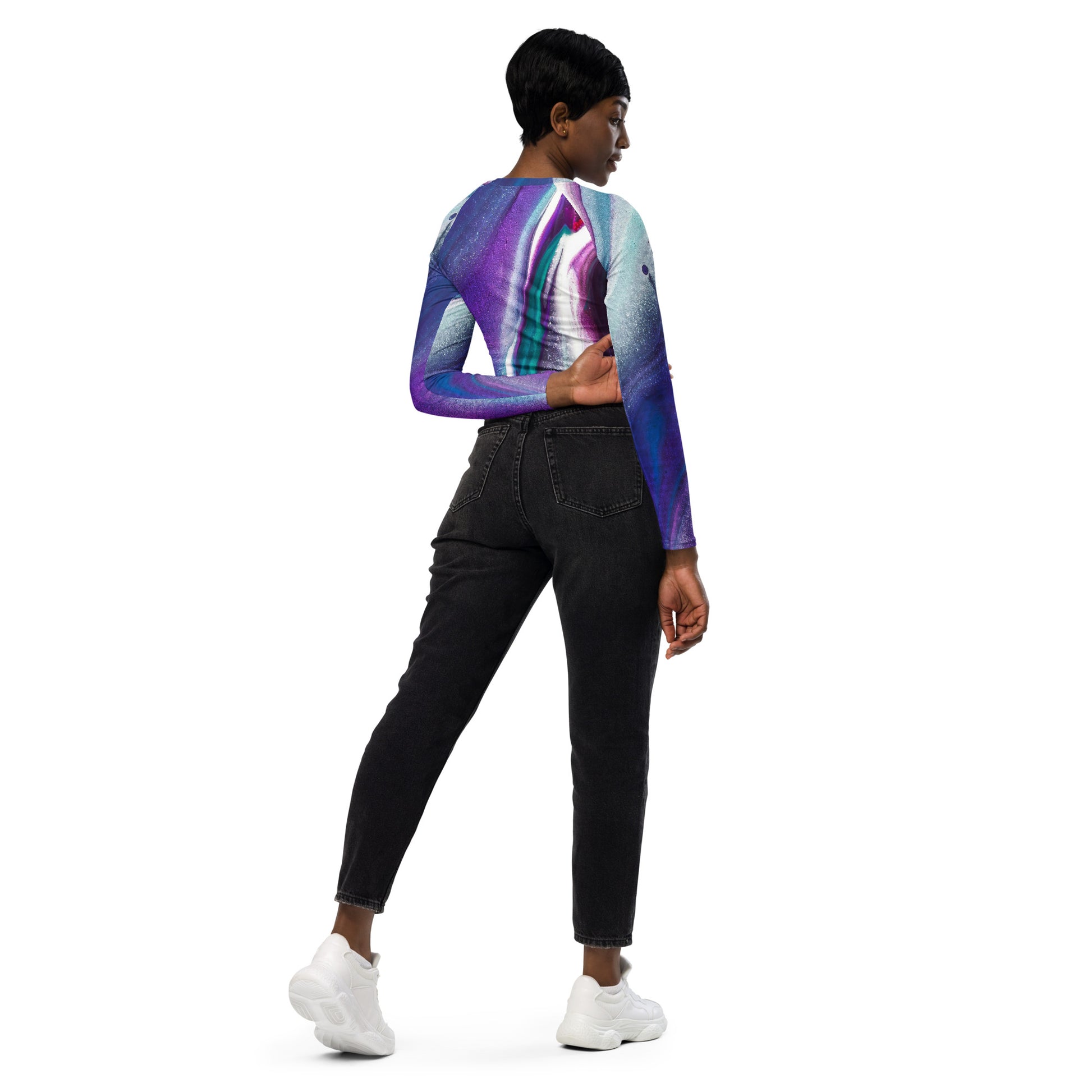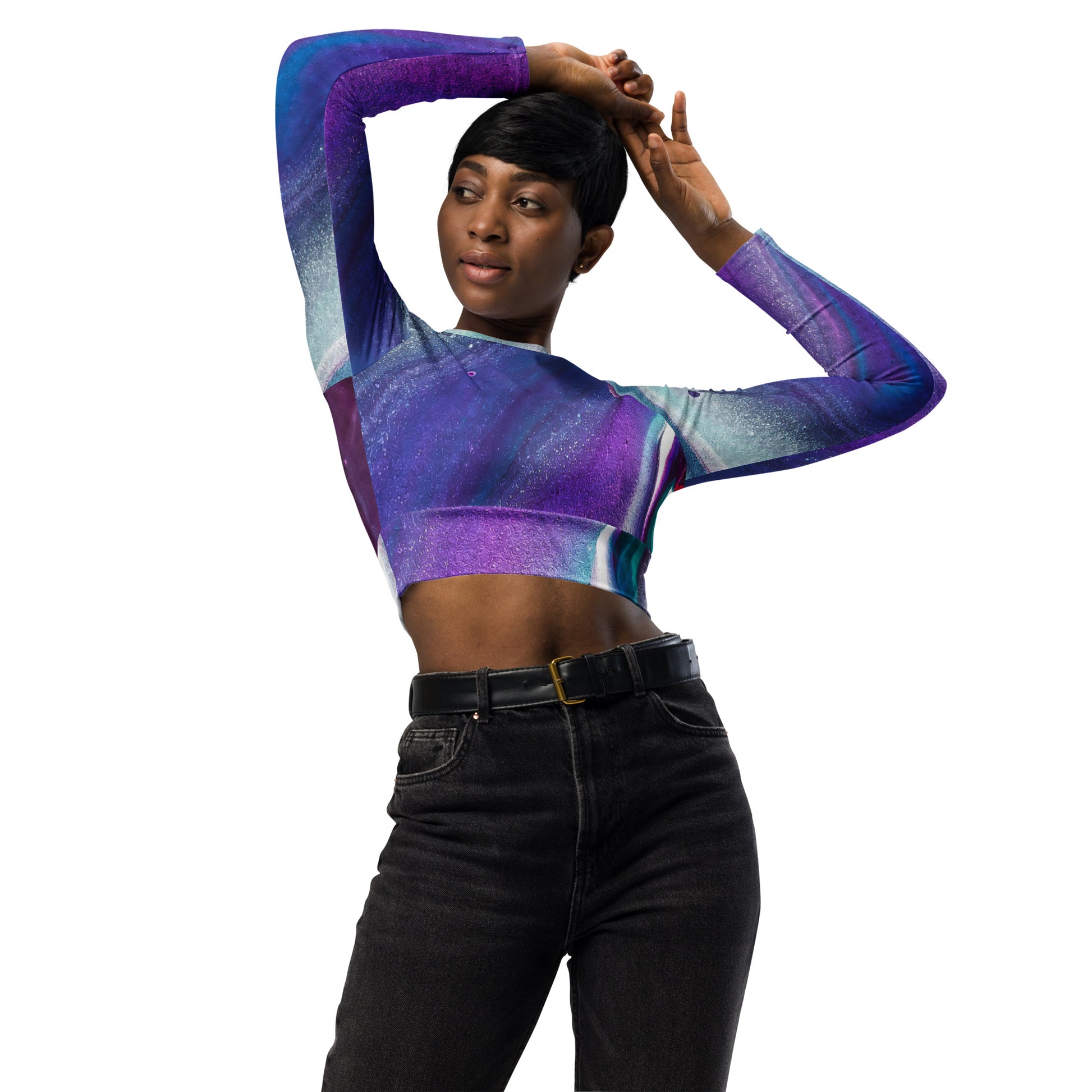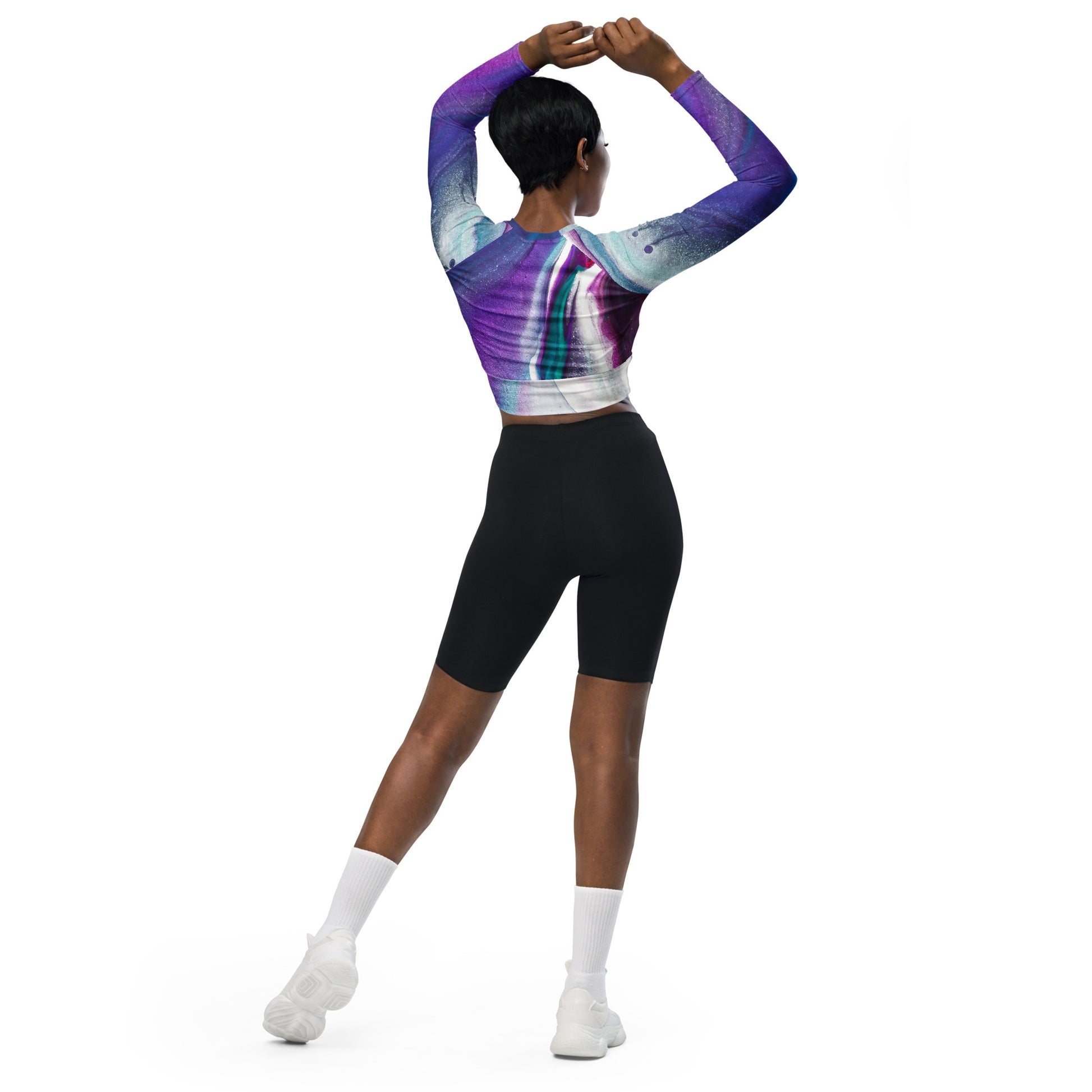 Purple Abstract Recycled Long-Sleeve Crop Top