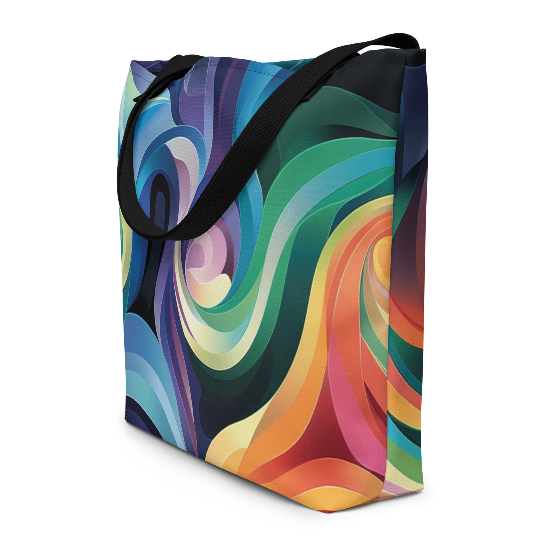Purple Black Blue Orange Large Tote Bag with Pocket